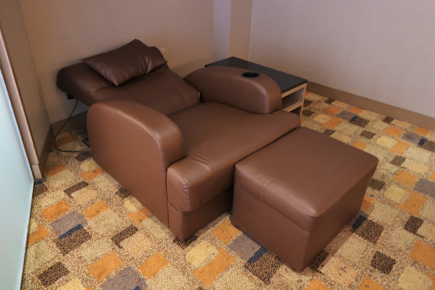 There's also a small room near the lounge entrance with five lounge chairs that recline fully. These seats look perfect for a nap, and are probably adequate enough for an overnight layover. After all, the lounge is open 24 hours a day, seven days a week.