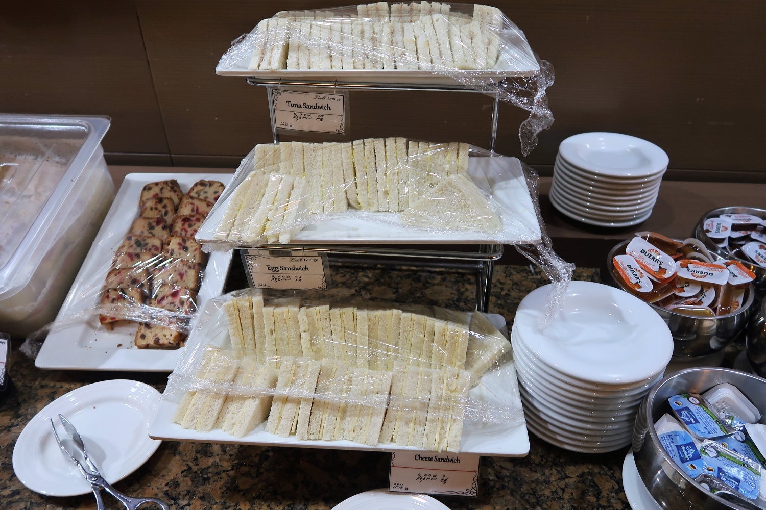 Cold tuna sandwiches, egg sandwiches and cheese sandwiches were also available on crustless white bread. They didn't seem too appealing — there appeared to be a lot more bread than filling in each sandwich.