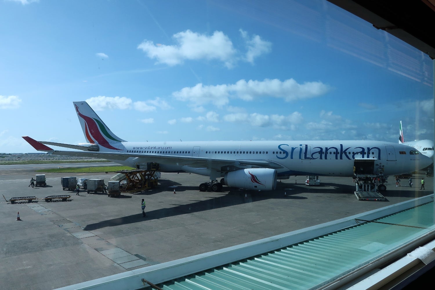 AvGeeks will rejoice in knowing that you can see the apron from the lounge. We had a great view of our Sri Lankan A330 that we arrived on from inside.