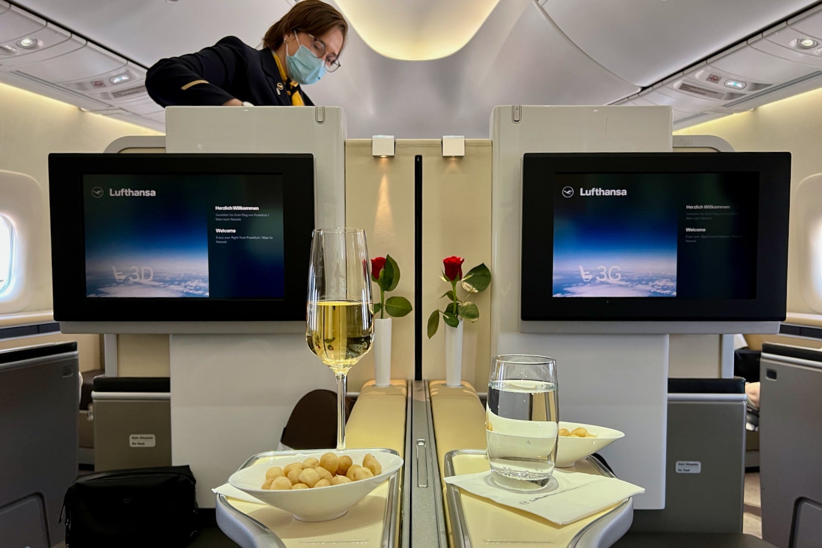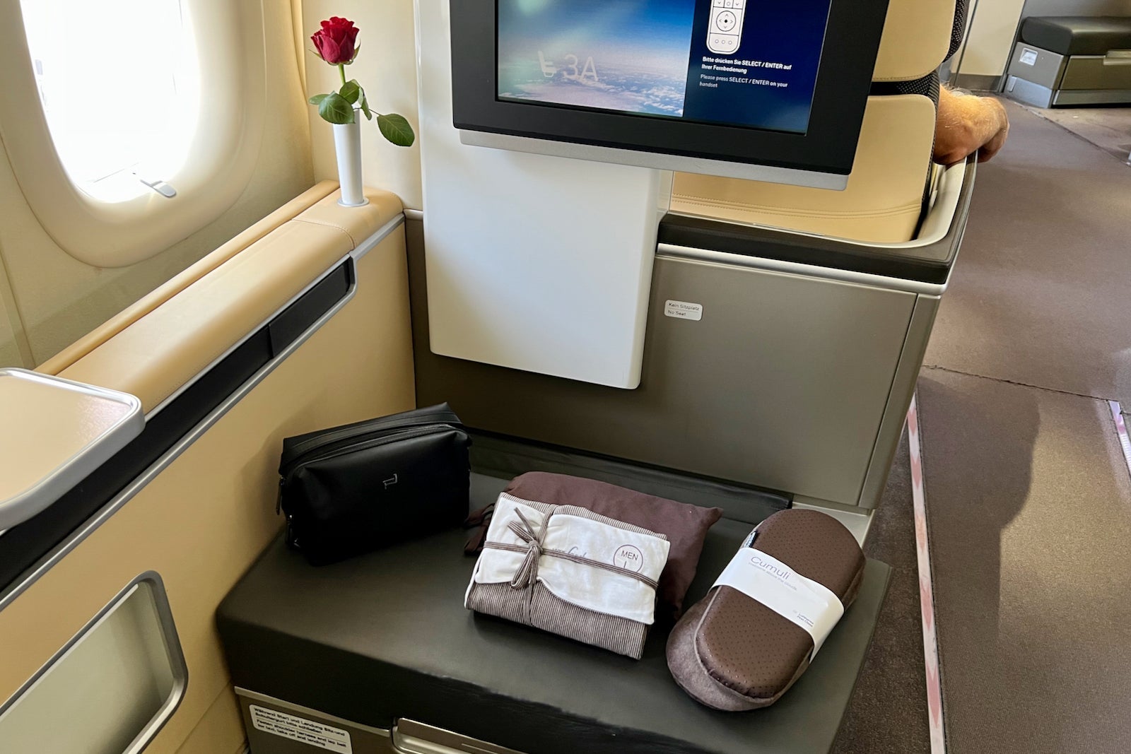 You'll feel like royalty with all the goodies you receive in Lufthansa first class.