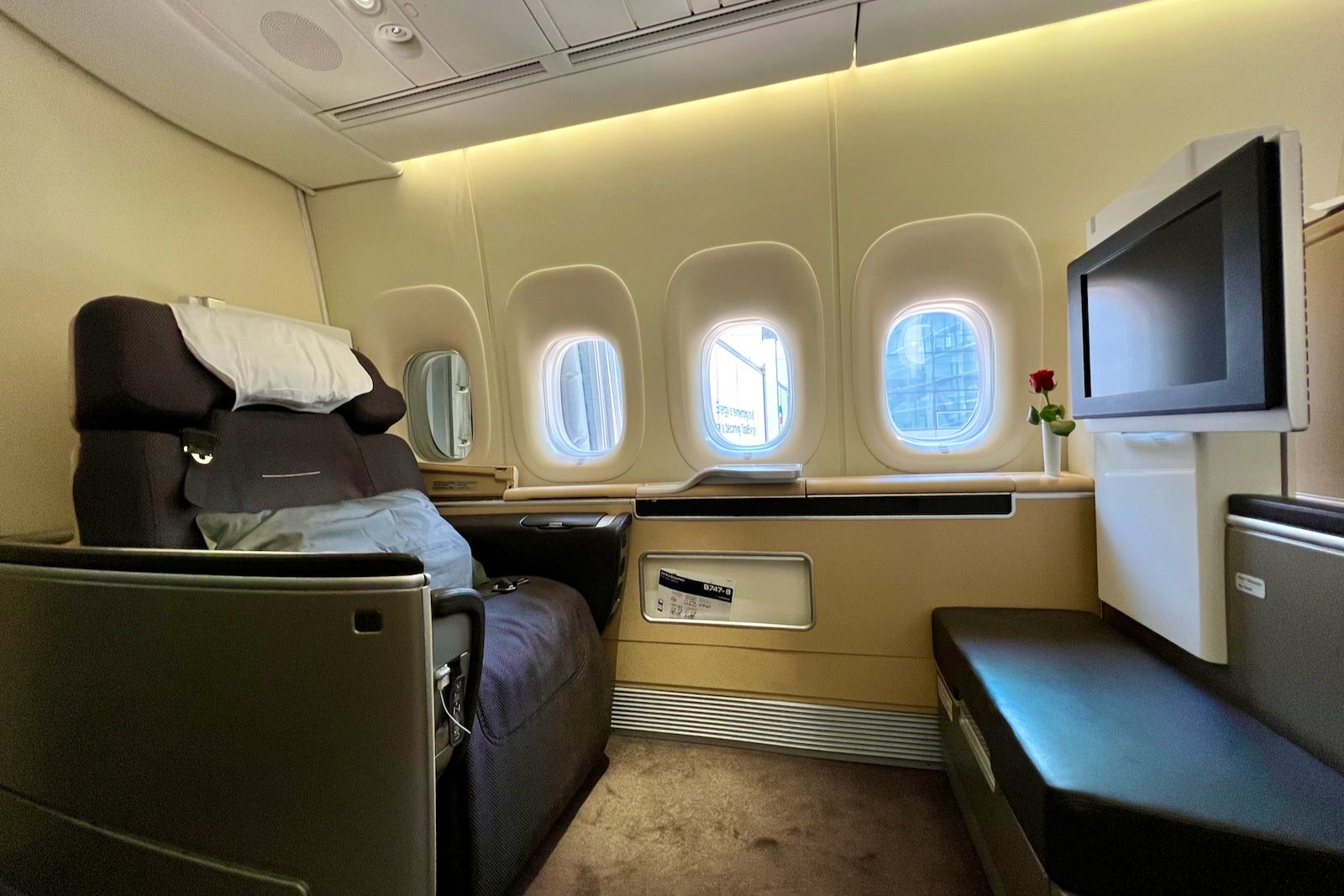 First, the airline's first-class footprint is currently limited to just one aircraft type in the fleet, the Boeing 747-8. The airline's Airbus A380s, as well as its Airbus A340-600s with first class, are currently grounded due to the pandemic.