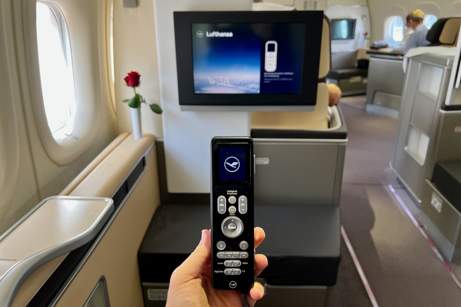 There's a remote built into the armrest that you can use to control the screen, though the IFE software wasn't responsive to the buttons.