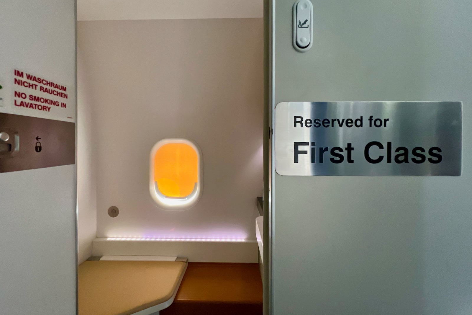 While the first-class cabin is largely the same across all Lufthansa jets, the one major difference on the 747-8 is the size of the two lavatories compared to the airline's Airbus A380.