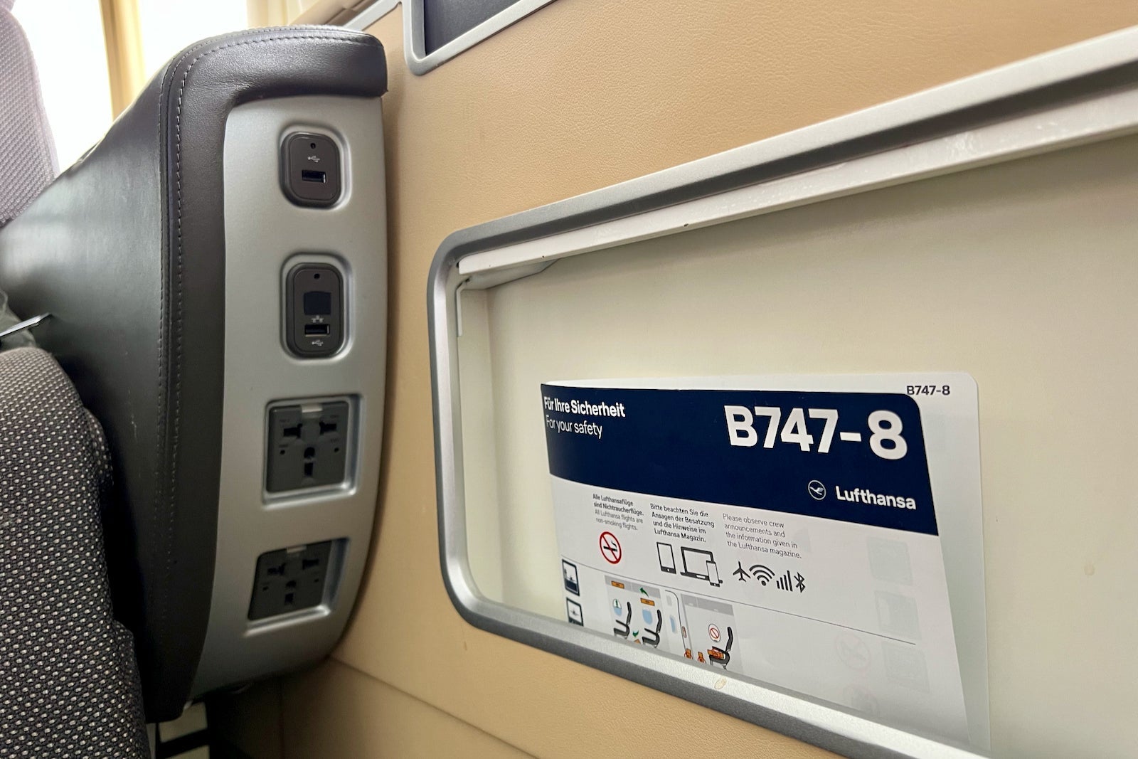 Each seat also features two universal power outlets, along with two USB-A ports. I don't love the placement of the outlets, since I inadvertently kicked out my power adapter a few times.