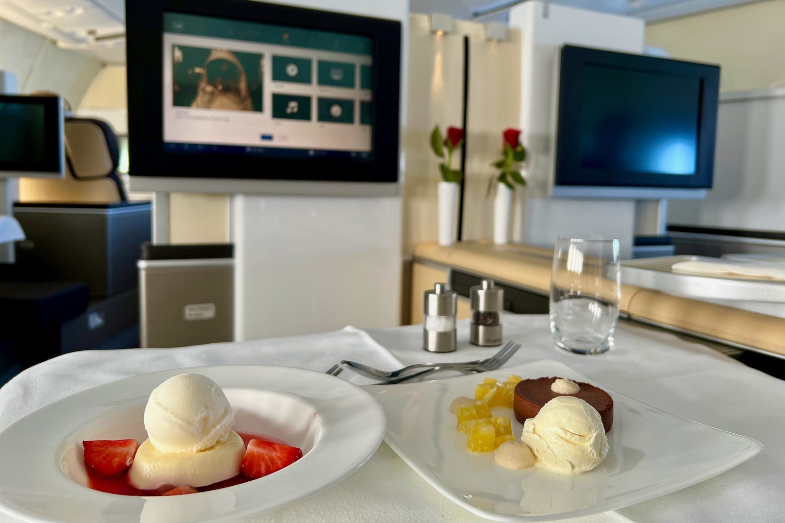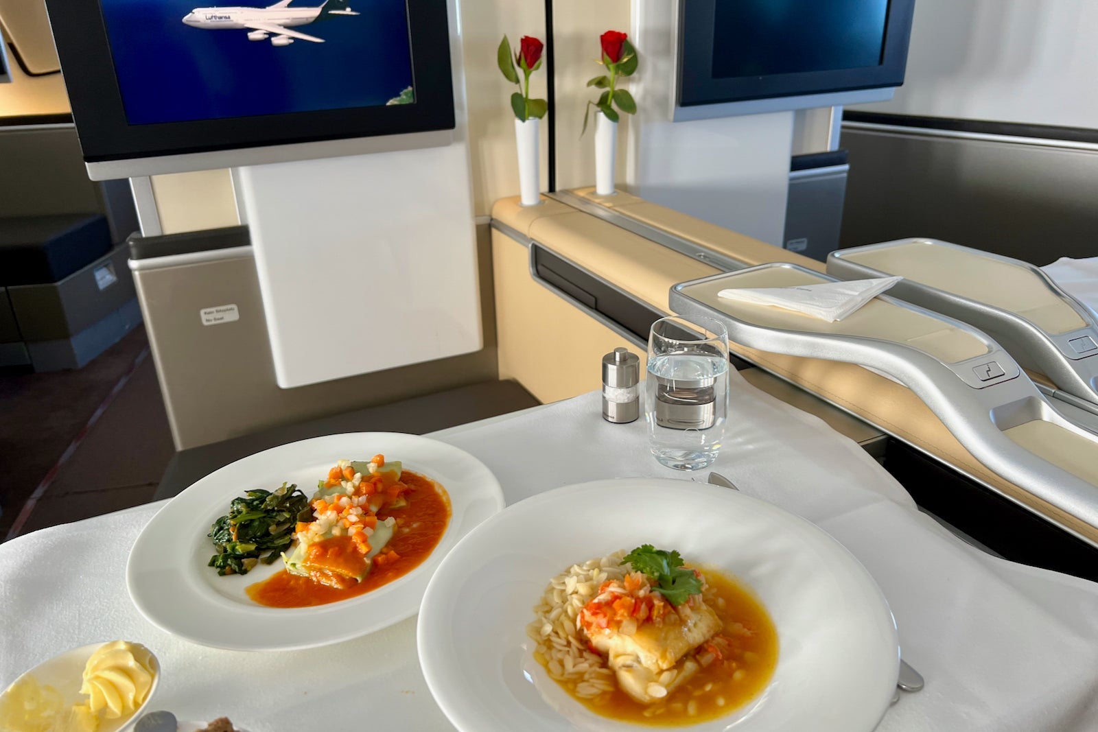 Nina, the first-class flight attendant, built a rapport with both the English- and German-speaking passengers and attended to all our needs throughout. Whether it was another water refill or clearing our plates, everything was done proactively and with a smile.