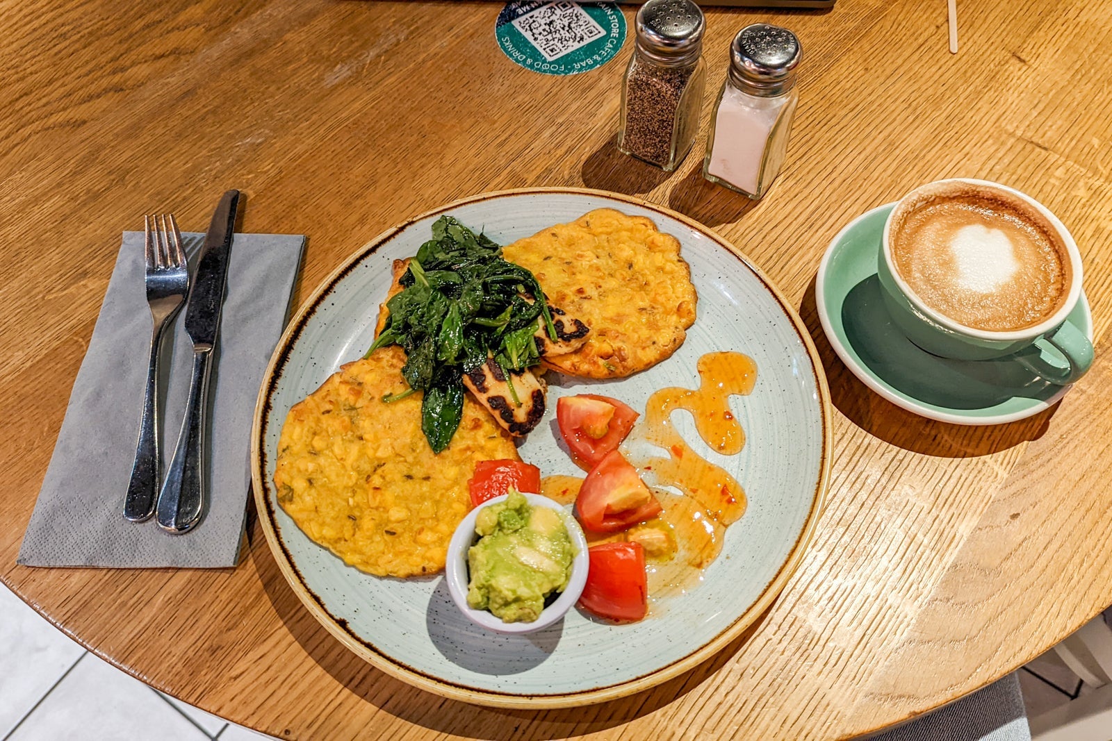 Admittedly, my sweet corn fritters weren't great — rubbery, bland and not something I would eat again. But the grilled halloumi cheese hit the spot as did the coffee. It came in at just under 15.40 pounds ($17.90) in total including the service charge, and the staff advised me there was nothing more to pay. I was on my way to the gate.