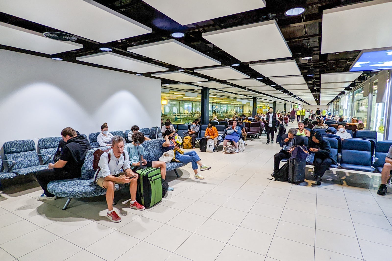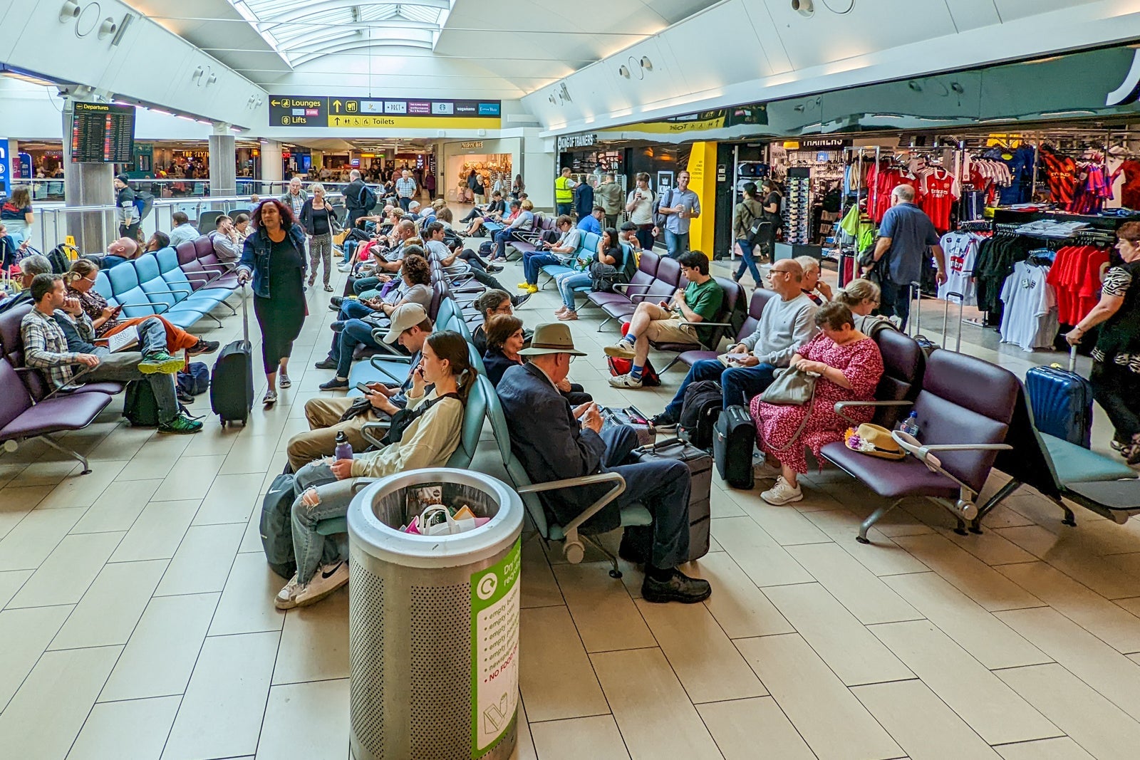 Gatwick Airport is not a particularly pleasant or well-designed terminal. Seating is crammed into every space possible including hallways, causing bottlenecks and a general feeling of crowding.