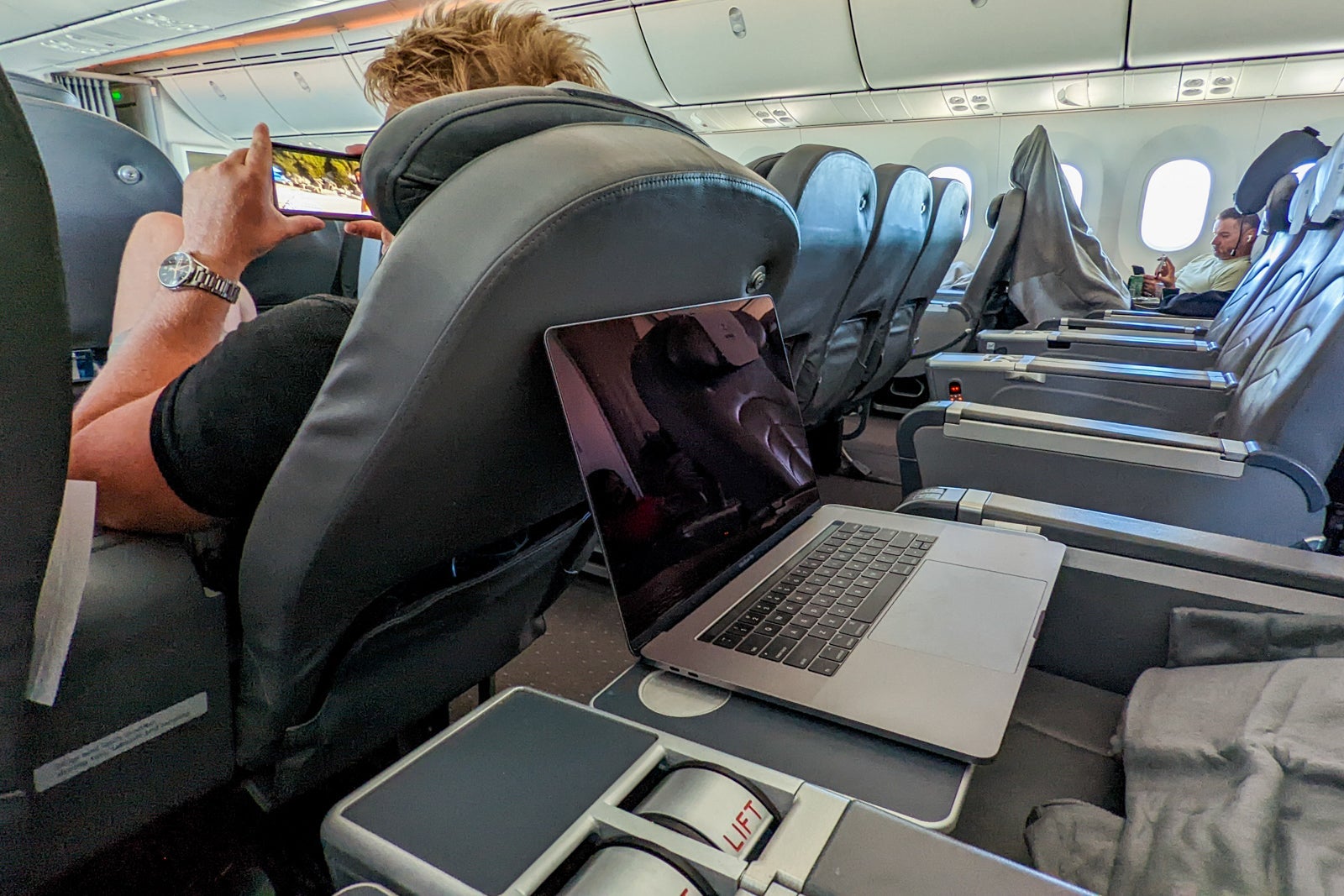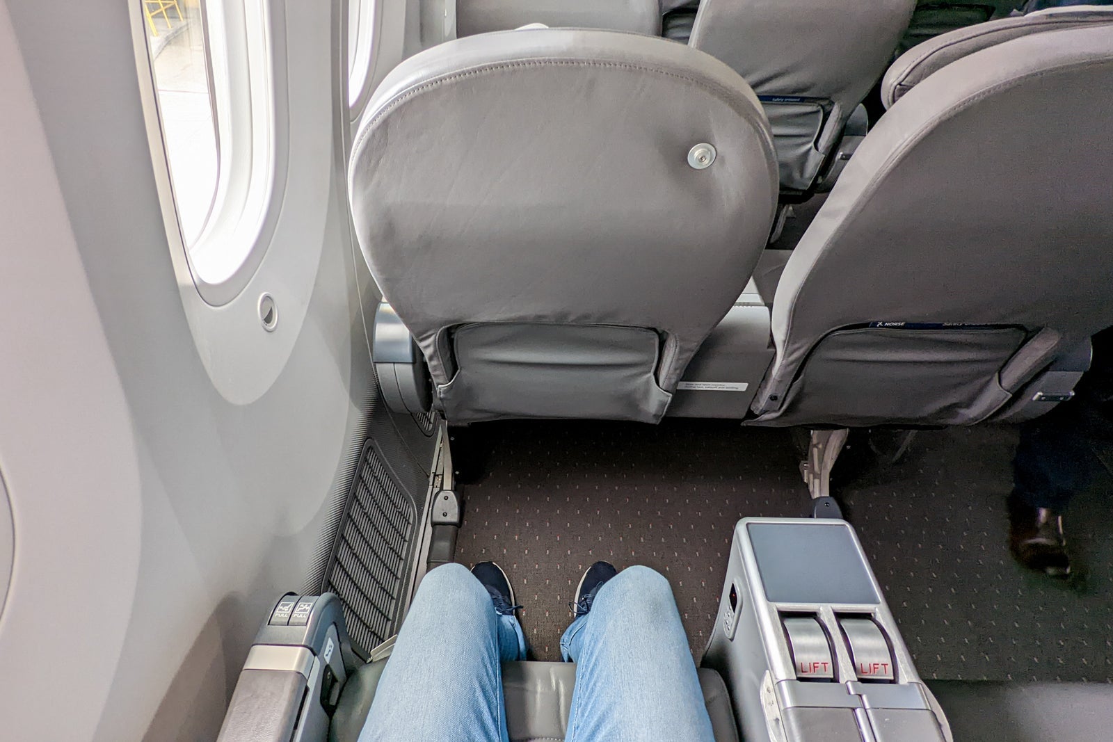 The 12 inches of recline each seat had was also more than you find on other carriers in premium economy, where the typical recline is nine or 10 inches. It was both a blessing and a curse — the angle was great for napping as it went almost flat, but when the passenger in front was fully reclined, it greatly reduced my personal space, even with the generous legroom.