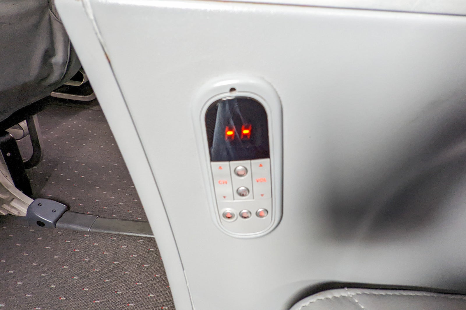 With no Wi-Fi available on the flight, I perused the 9-inch inflight entertainment screen with interest. It swung out from the center console next to my feet and could be operated by both its touchscreen and a small remote housed below the center beverage tray.