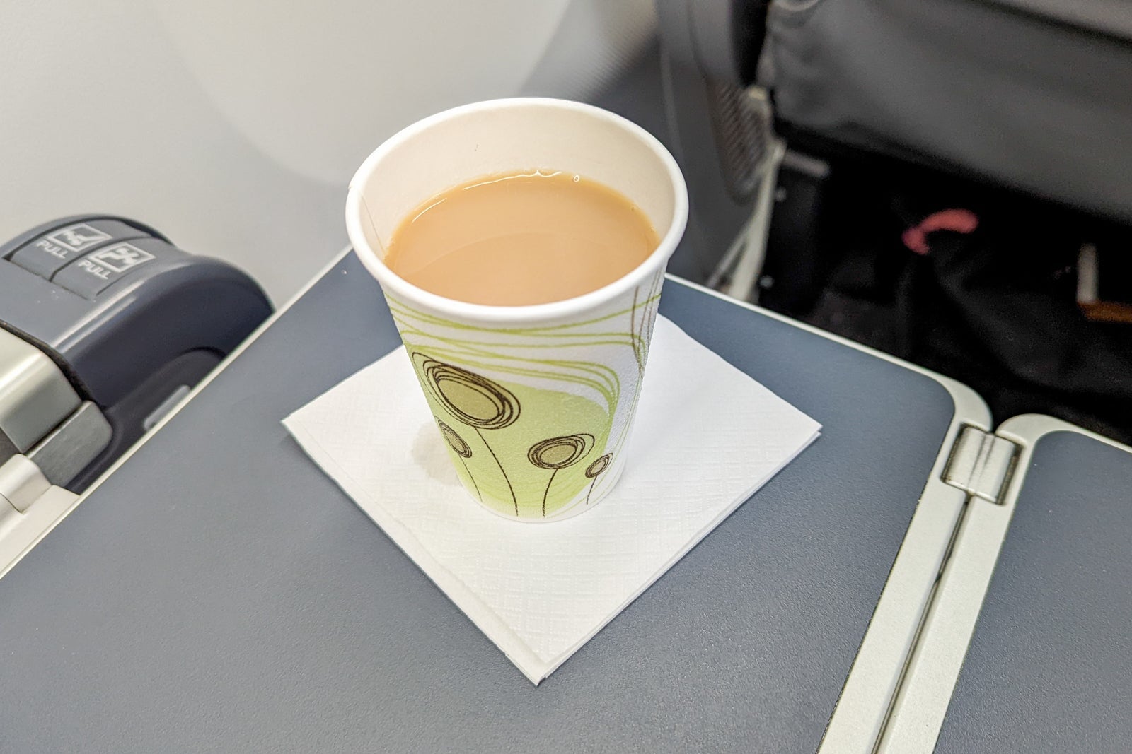 Tea and coffee were also offered to Premium passengers at no cost. This was served in a paper cup, ending an uninspiring first meal.