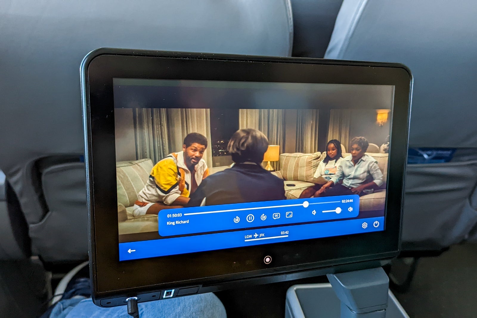 Entertainment options were limited, with only 18 new release movies including "Belfast," "Dune" and "The Matrix Resurrections." As an avid tennis fan, I enjoyed "King Richard," the story of Venus and Serena Williams' rise to fame. The TV series options were even less impressive, with "B Positive" as the only box set, and the flight map feature was not interactive.