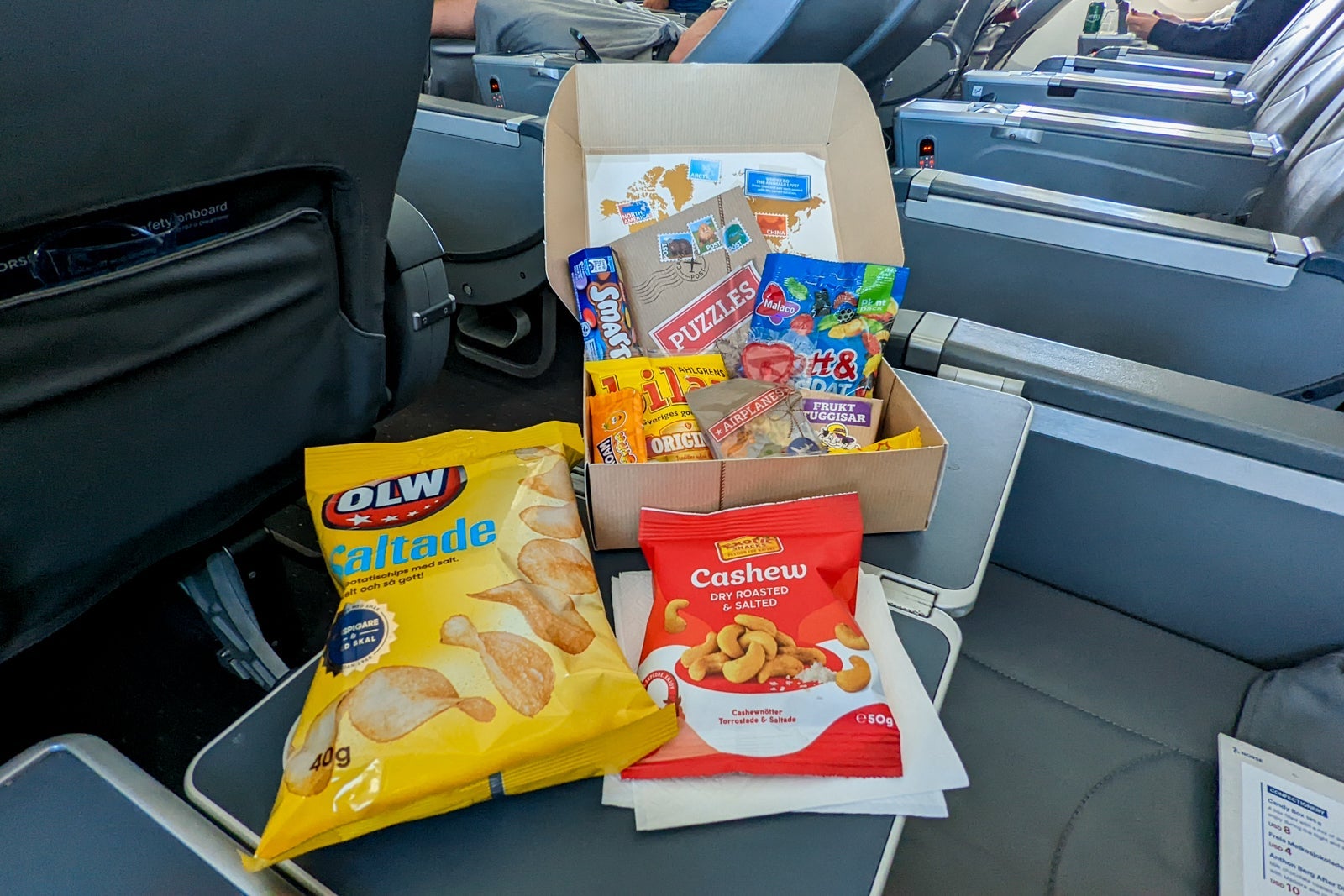 While there was nothing particularly exotic about the cashew nuts, I thoroughly enjoyed the candy box again, which provided numerous sweets from Sweden. (I could barely pronounce their names but they were tasty.) Whether you are traveling with a small child or a giant child like myself, it was a fun, destination-themed way to pass the time across the Atlantic.
