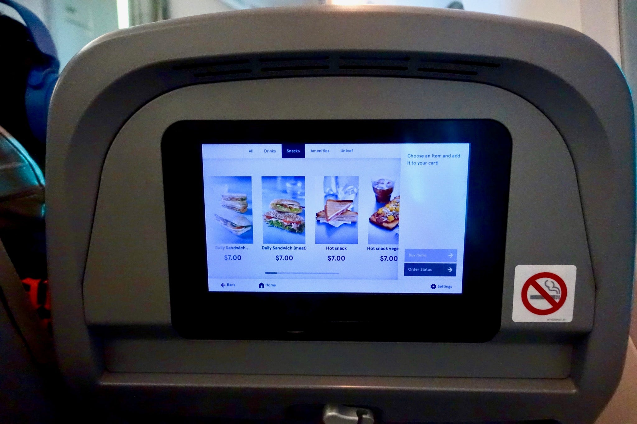 Between meals, snacks and drinks were available for purchase through the IFE system. Most nonalcoholic drinks cost $3, while sandwiches cost $7. Cups of water were available for free, but only if you asked a flight attendant directly.