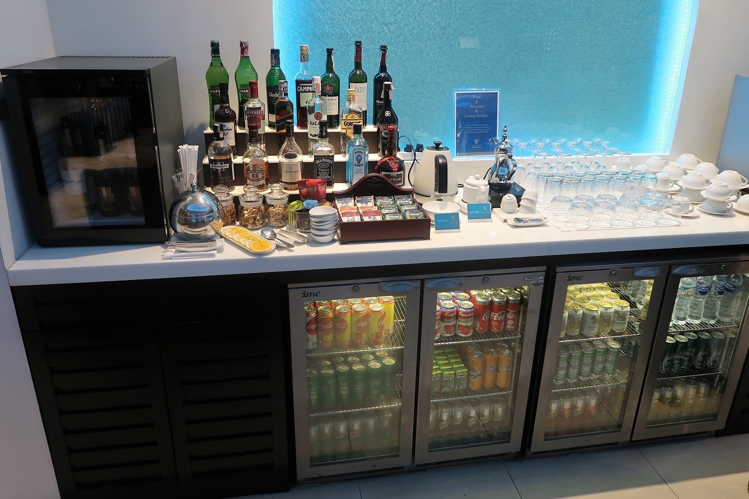 Drinks included various sodas, canned beers, coffee, wines and liquors. The liquor and wine display was nicely presented and provided a decent variety, considering the relatively small size of the lounge.