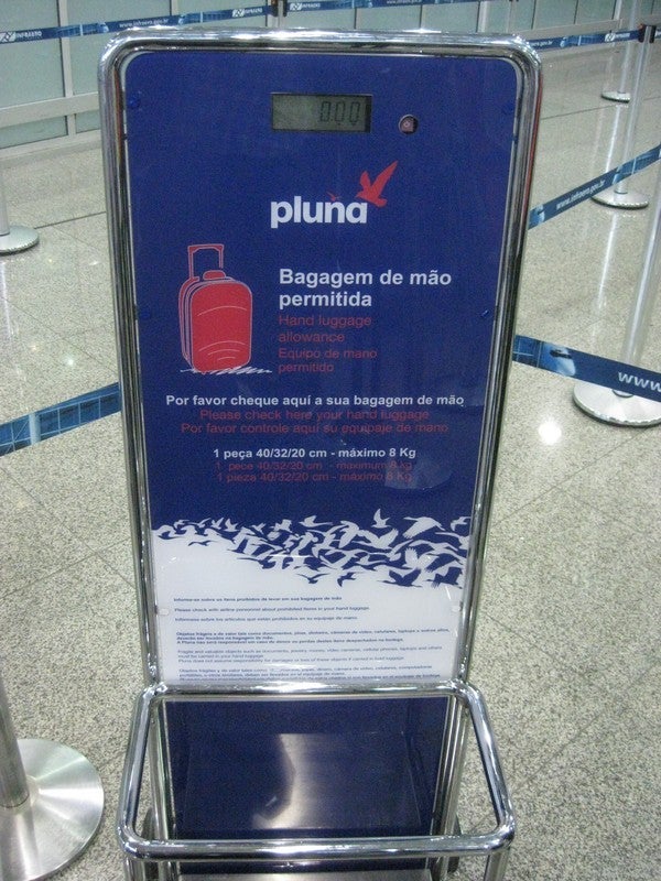 We got to GIG in 20 minutes and arrived at Terminal 2, which is where we came in on United. Pluna actually uses United and US Airway's ticketing space, since their flights don't leave until the evening. We waited for about 15 minutes in line and they even had a baggage man who measured and weighed carry-on/checked bags, so that when you went to the ticket counter, you already knew what had to be checked. He even put on a plastic security fastener on my bag- how nice!
