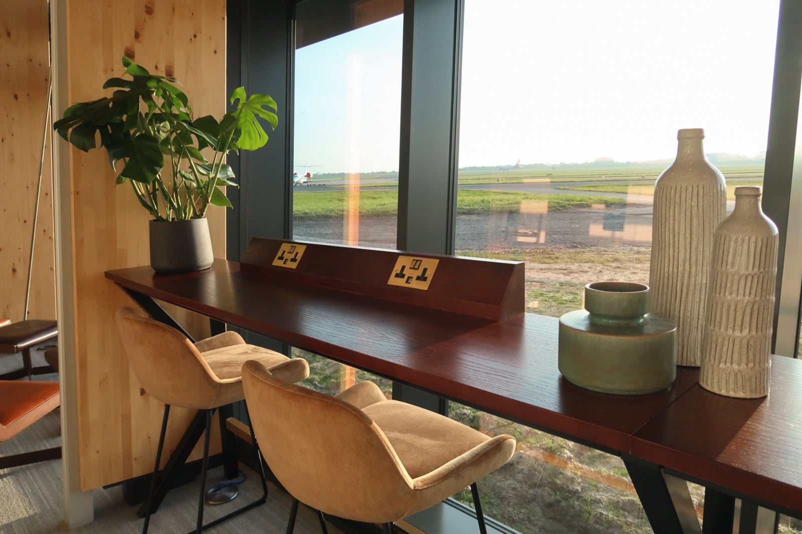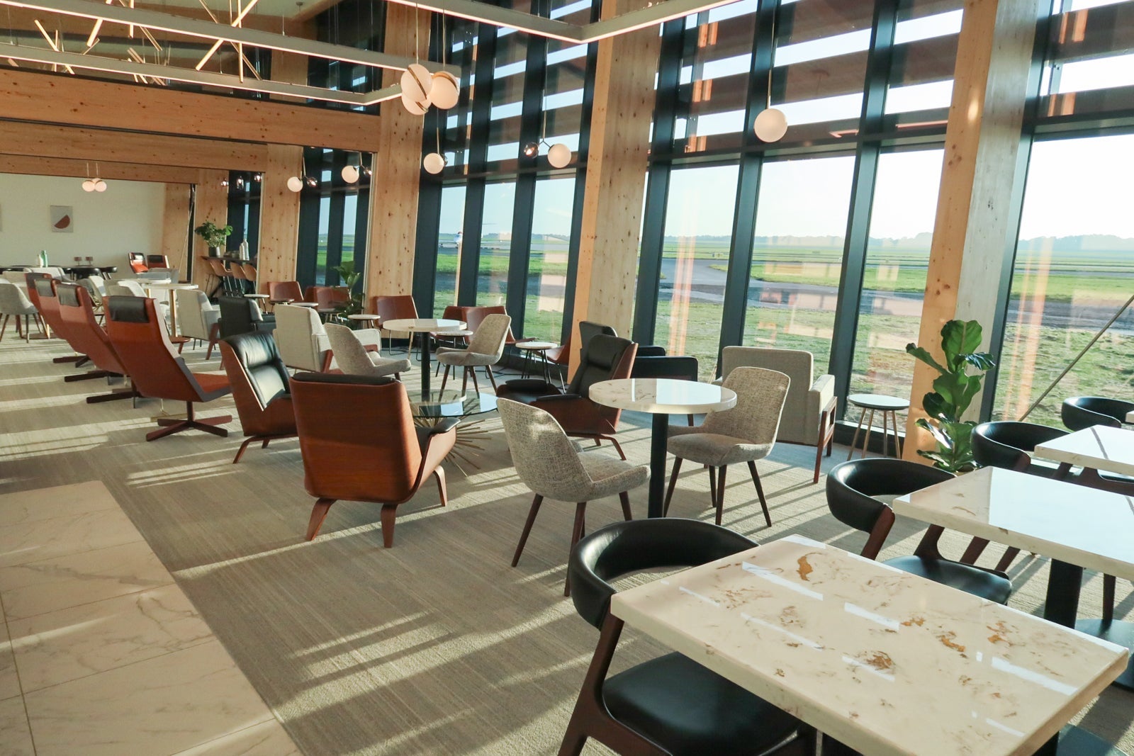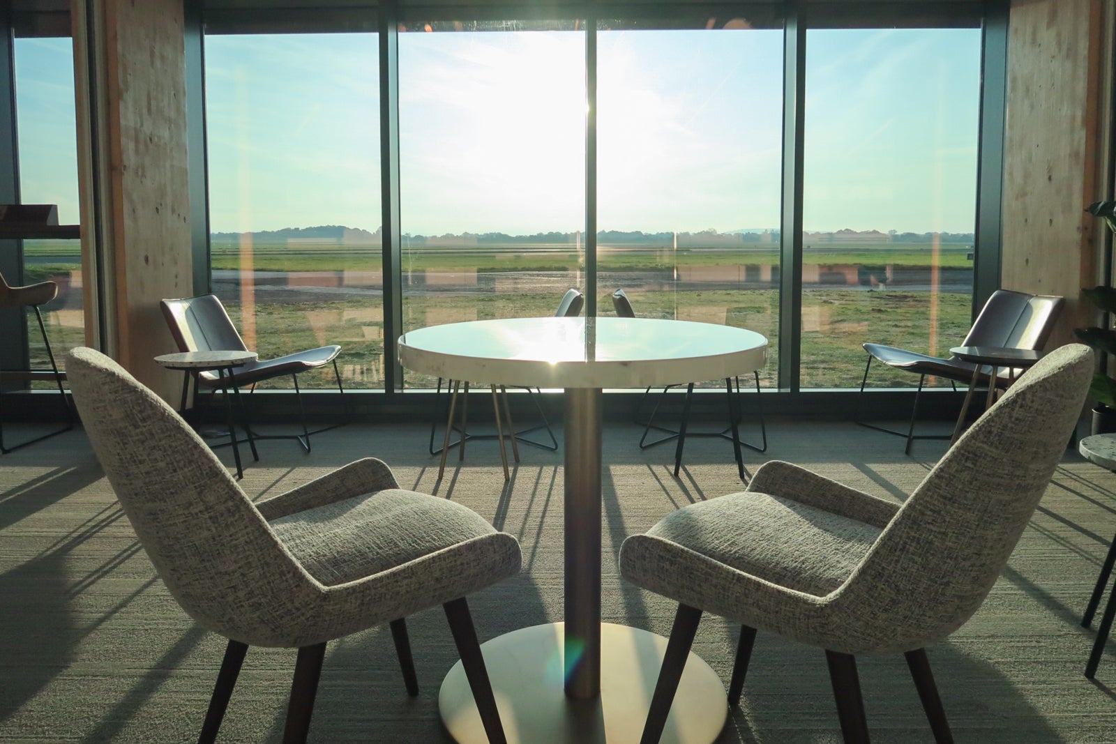 There were various different seating and table options in the lounge, including relaxing at the window with a view or having a quick coffee meeting before your flight.