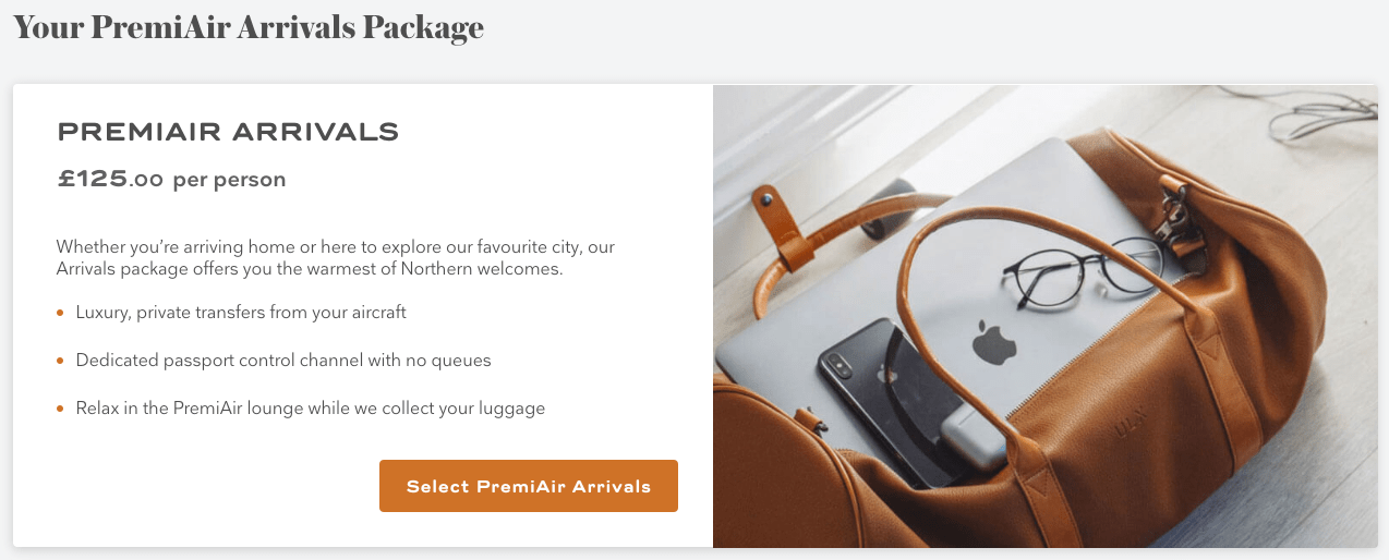 For arriving passengers, there is one package available for £125 ($160). The price includes private BMW transfers from your aircraft to the PremiAir terminal, dedicated passport control with no lines and a relaxing experience in the lounge while you wait to have your luggage delivered to you.