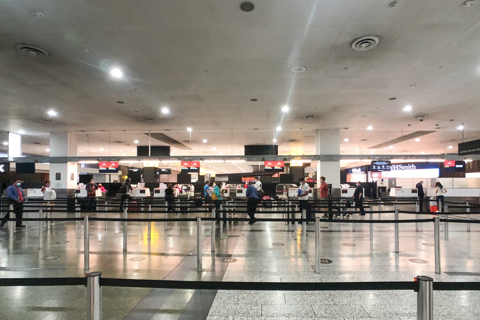 Only a handful of the regular check-in counters were busy throughout the entire terminal since so few international flights had resumed.