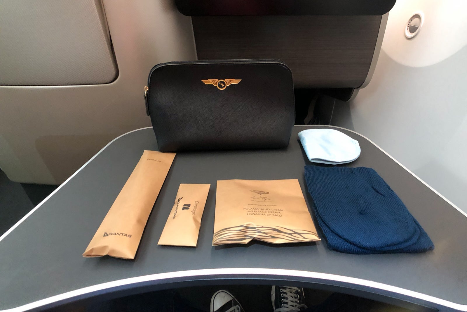 An amenity kit was waiting at my seat when I boarded and was designed with the airline's 1960s logo as part of Qantas' Centenary collection celebrating its 100th anniversary.