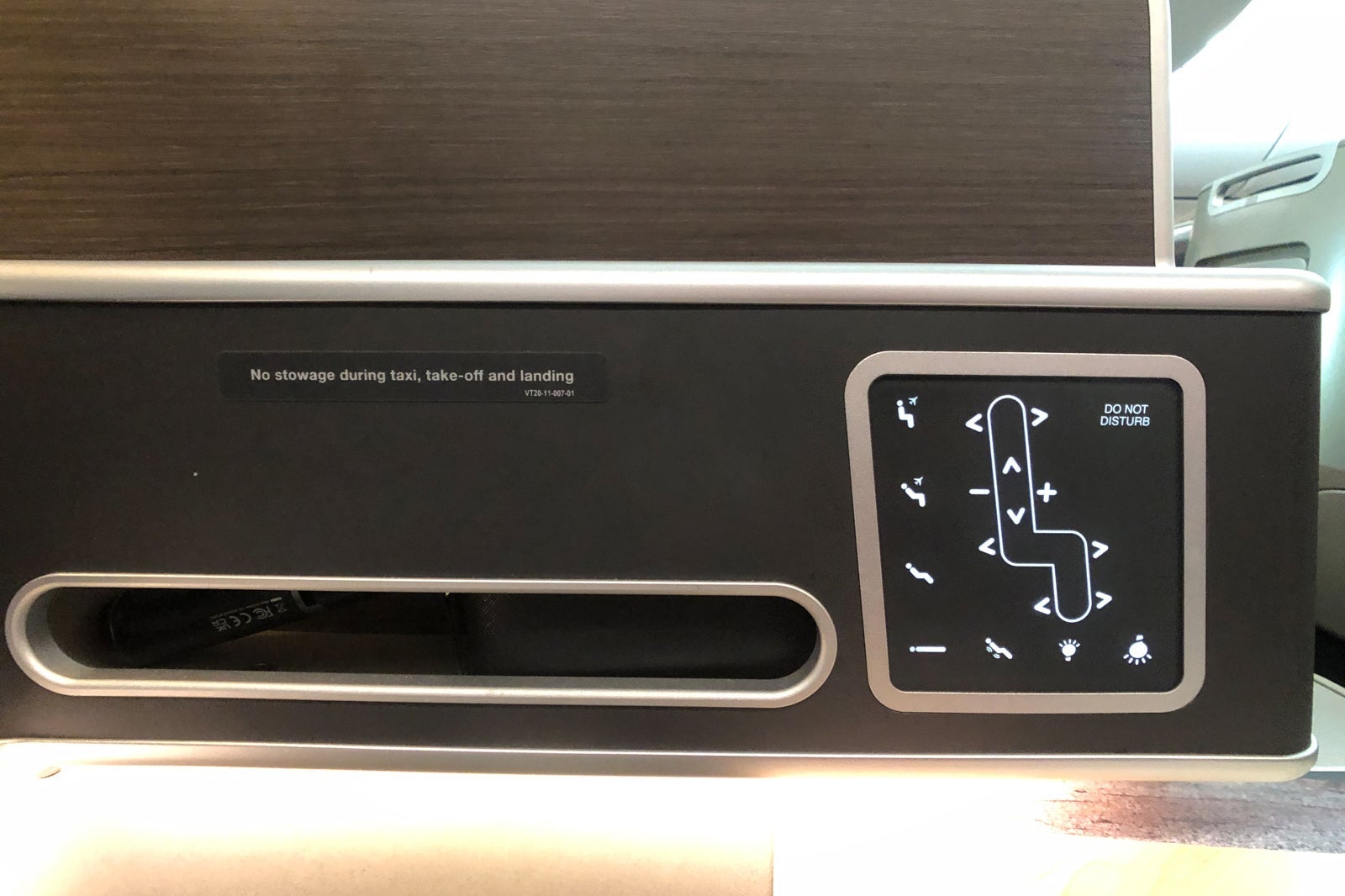 While it was not the fanciest of consoles, I liked the utilitarian icons on it, and appreciated the "Do Not Disturb" button, which illuminated my seat number in red when I wanted to rest. There are also two lighting buttons, one for the bright, overhead task light and another for a subtle lighting effect along the armrest that somehow makes it feel cooler than your average seat.