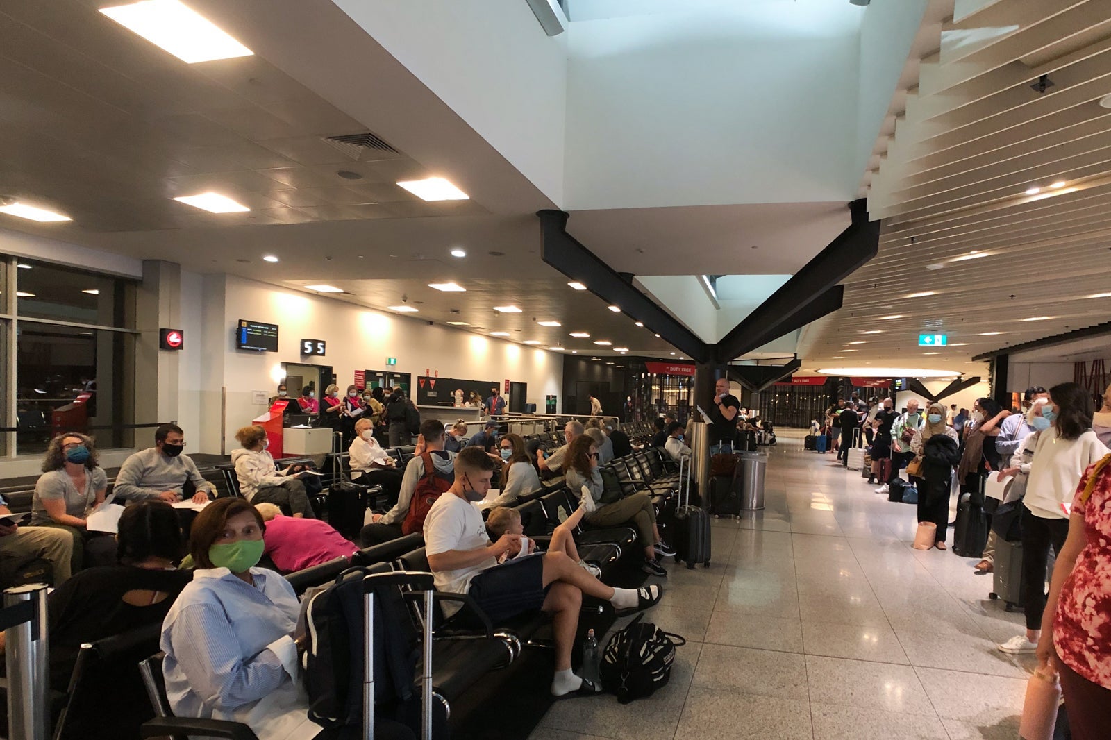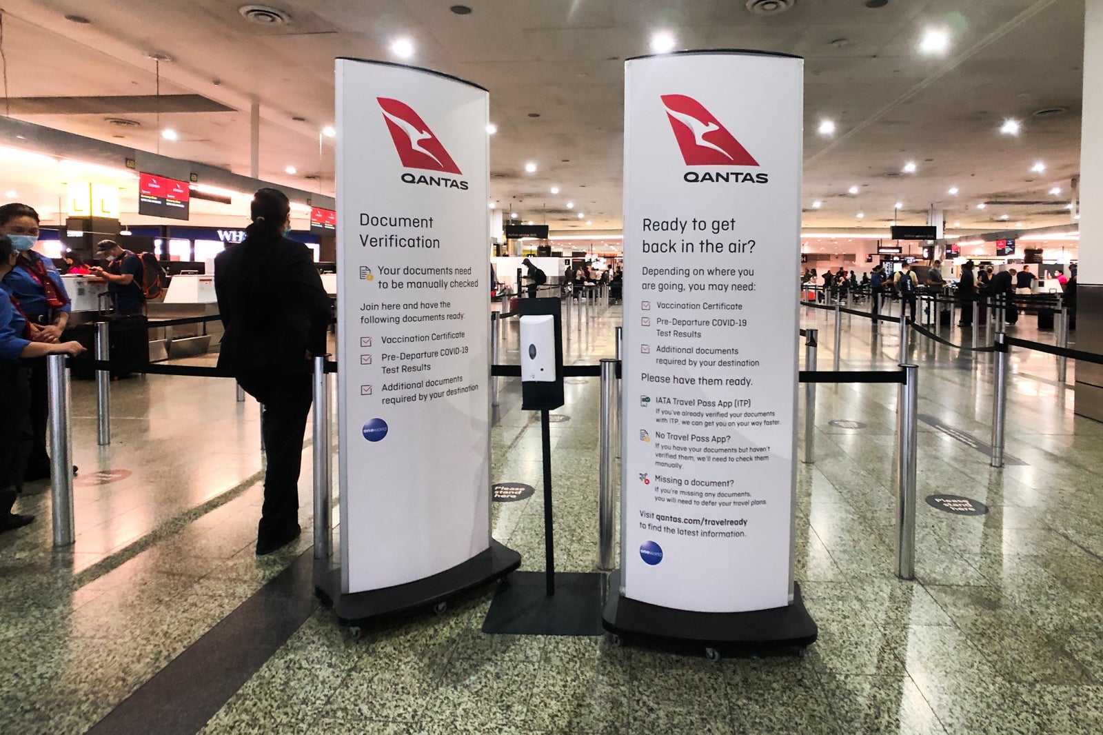 The Qantas counters for my flight were nearly deserted. I still ended up waiting for around 15 minutes, since the check-in agents had to verify each passenger's vaccination card, health declaration form and a negative COVID-19 test result from within the previous day to adhere to the current entry requirements for passengers from the U.S.