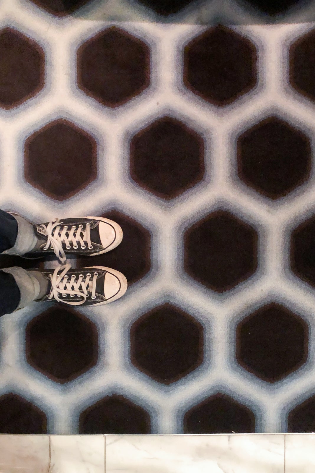 The distinctive, blurred honeycomb pattern on the carpeting was intended to make visitors feel uneasy looking down and encourage them to keep their gaze up to experience the surroundings. Mind tricks aside, that wasn't hard to do thanks to the vibrant palette of ochre, red, deep brown and white, all hearkening to the timeless vistas of Australia's landscapes. In short, it's just a nice looking lounge.