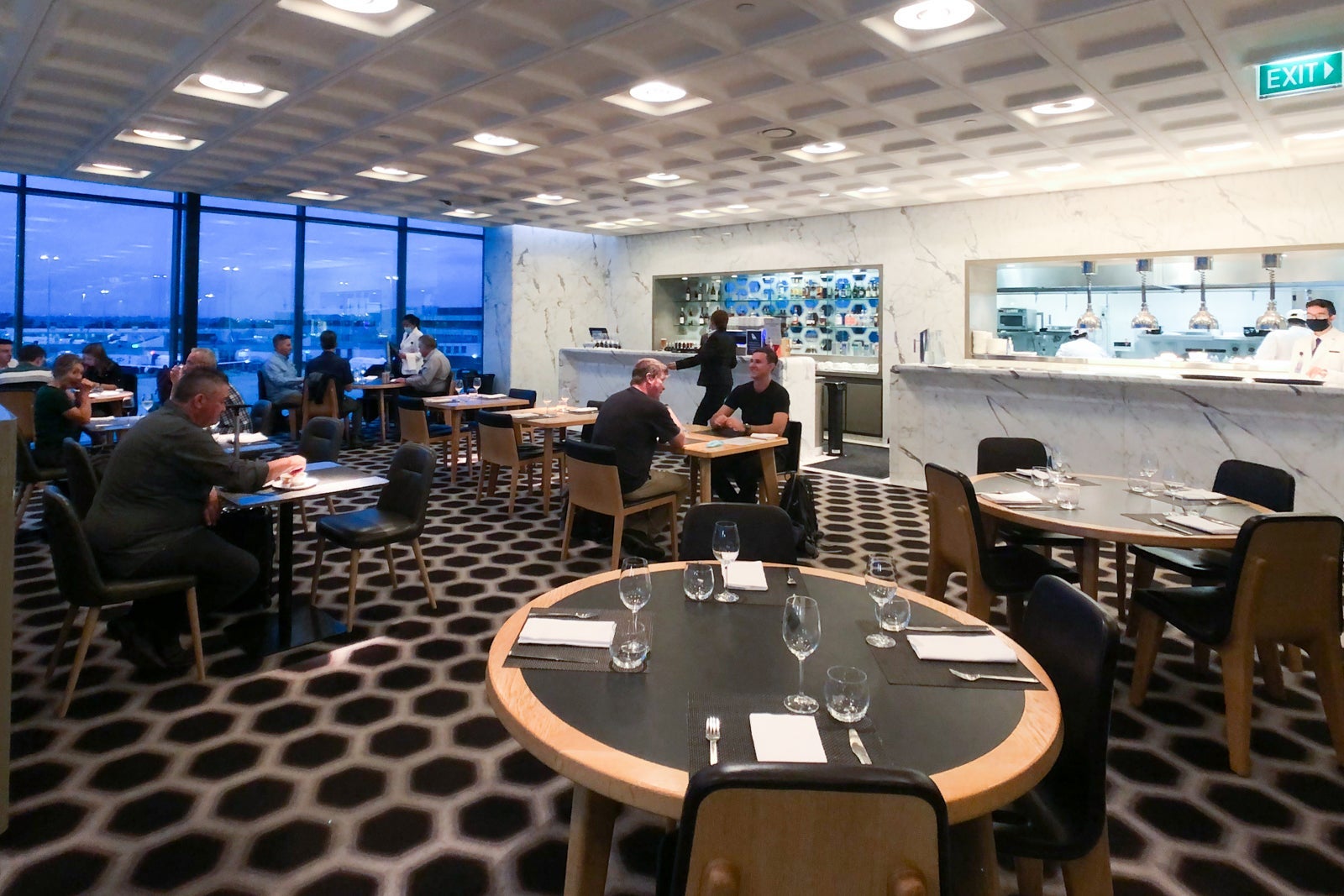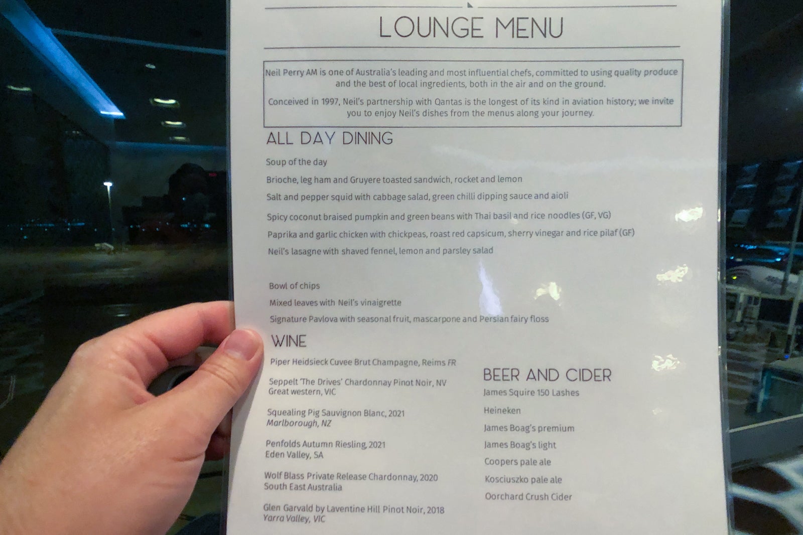 The wall opposite the entrance, which ran the length of the lounge, was all windows overlooking the tarmac and several gates. About a third of the lounge was taken up by its a la carte restaurant with menus by Aussie celebrity chef Neil Perry of Rockpool, a partnership that has been in place for around 25 years now.