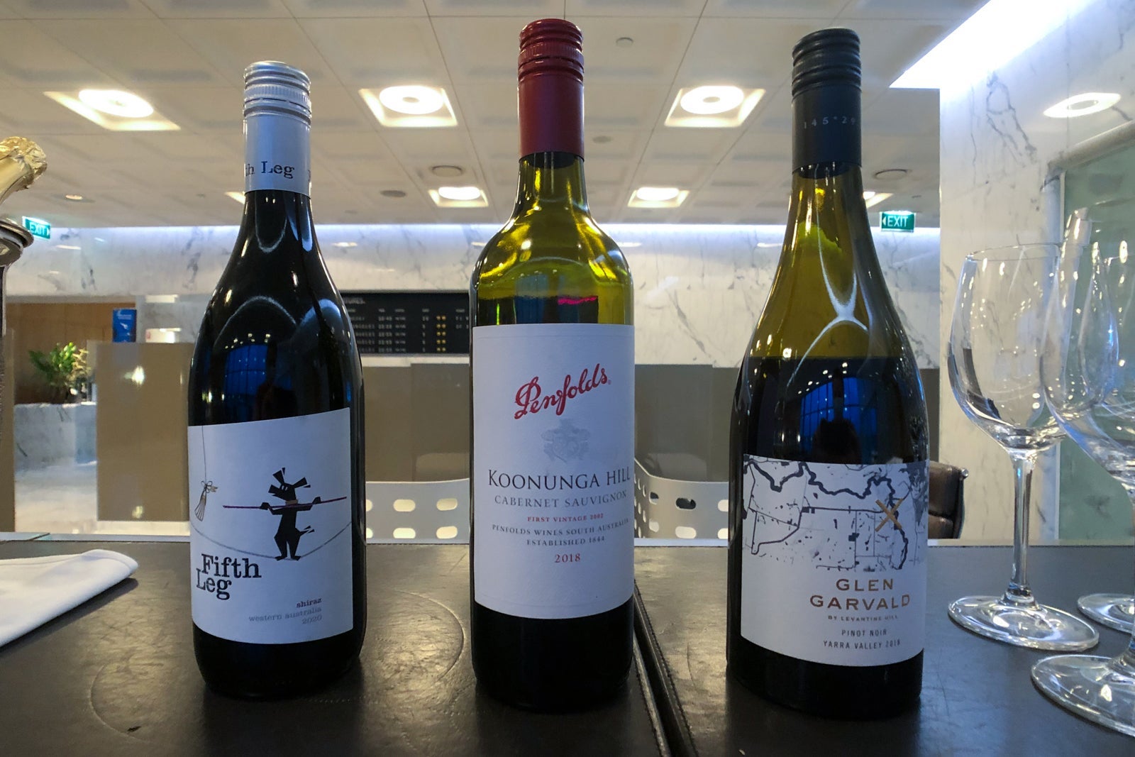 I did, however, want to try a few of the Australian wines available instead of the Piper Heidsieck Champagne. I asked for tastes of the Seppelt "The Drives" sparkling wine from Victoria, which was bright and refreshing, and the jammy but restrained Fifth Leg Shiraz from Western Australia's Margaret River region.