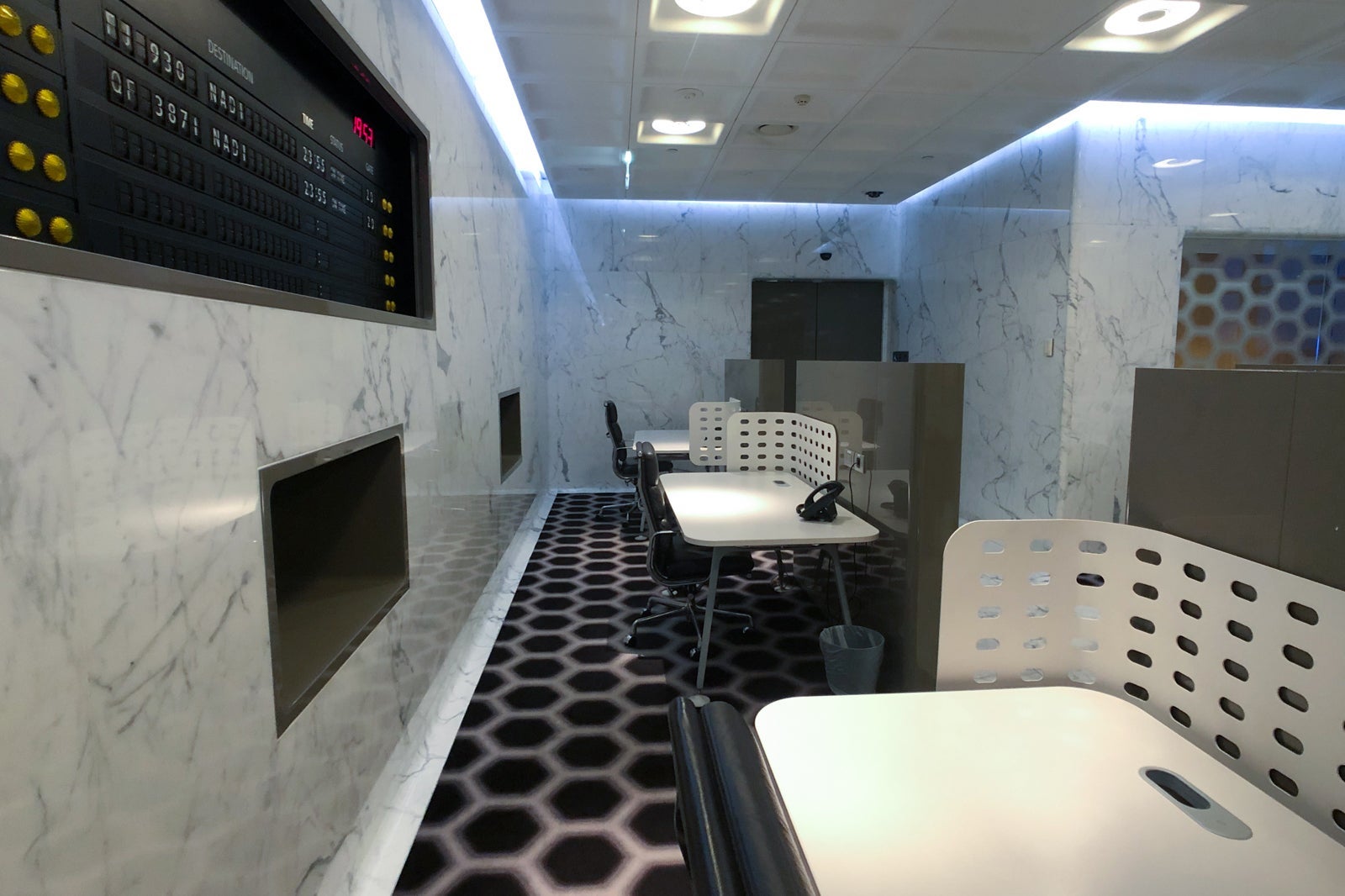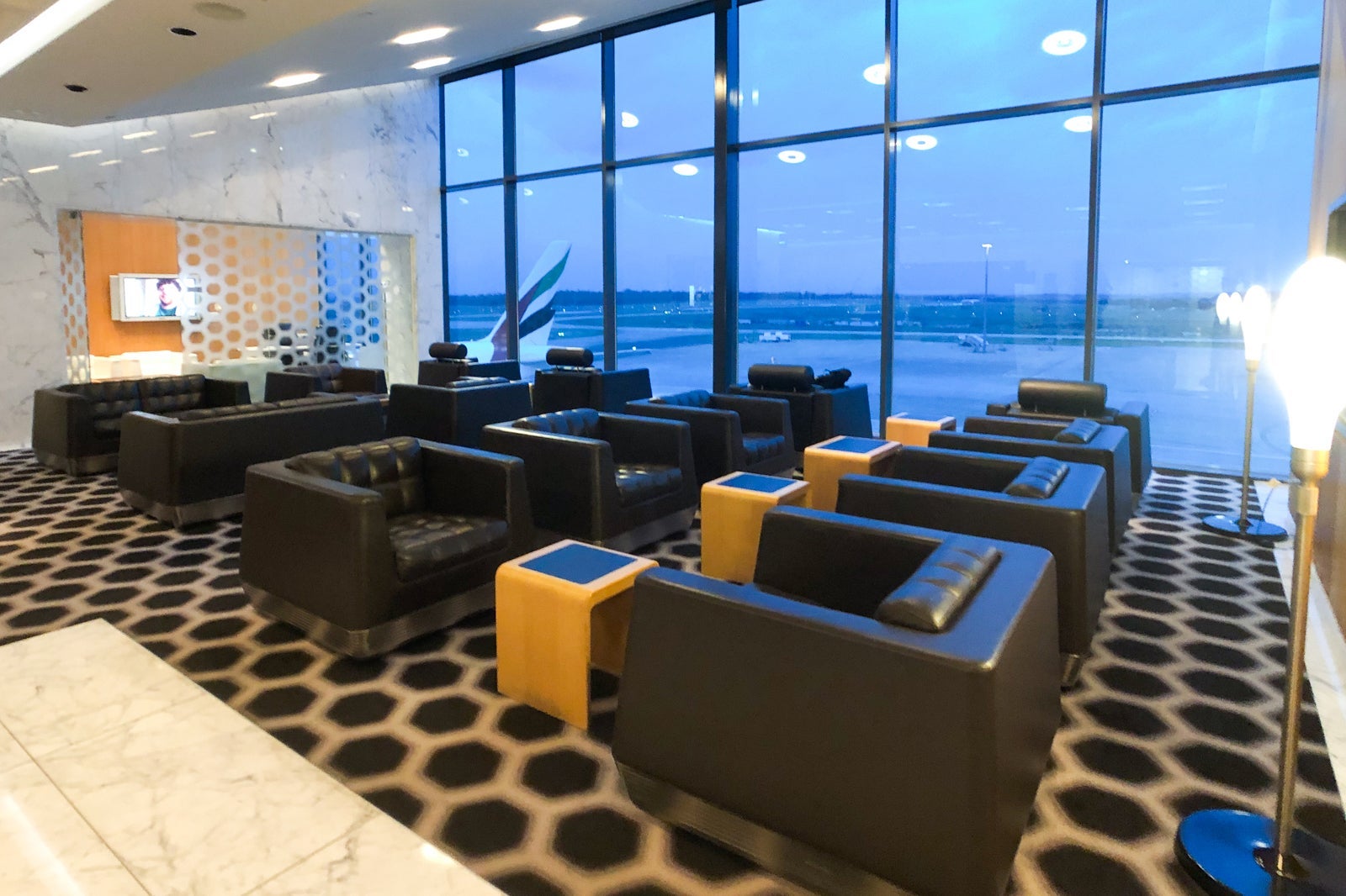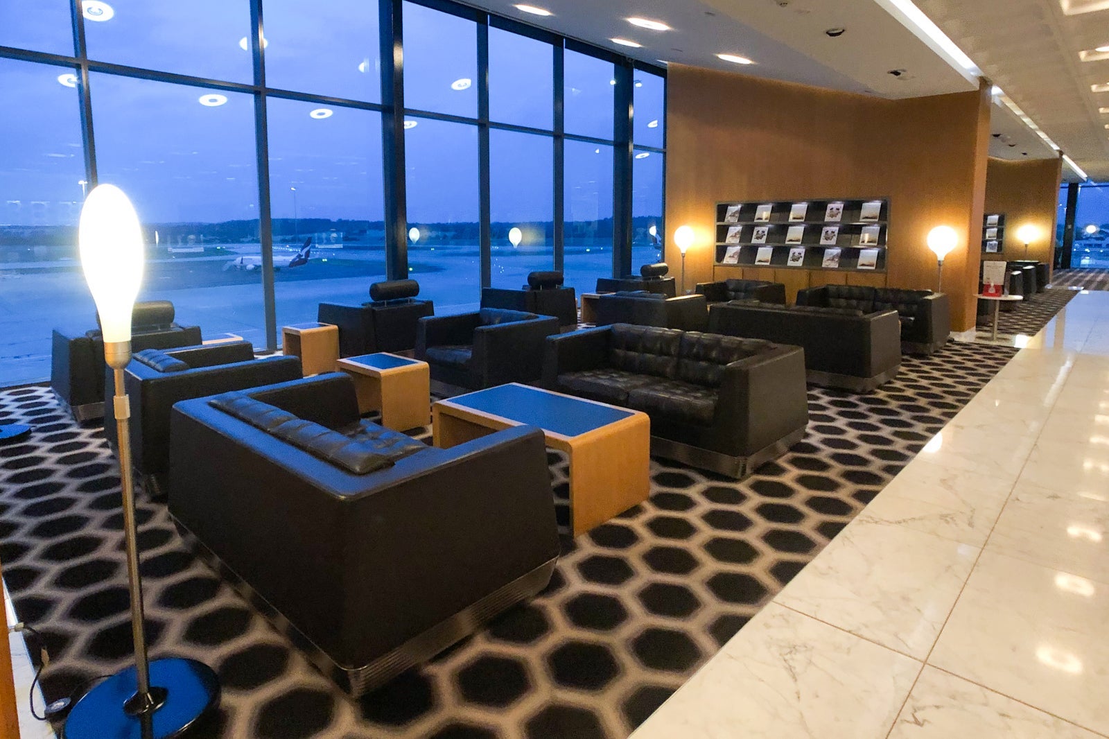 I was through immigration and security in a matter of minutes, then walked through the Duty Free shop and a depressingly empty corridor of luxury shops (all of them closed for the day). I continued on past a few deserted gate areas and finally took the escalators upstairs to the lounge.