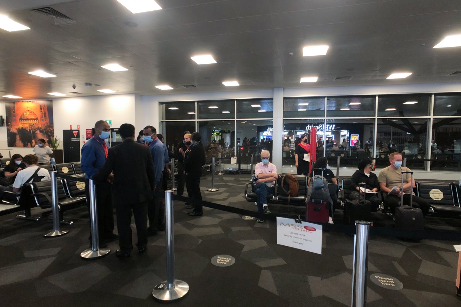 I headed down to the gate area shortly before boarding and found it cordoned off by a security company the airport had contracted to manage crowding. They were only letting transit passengers sit in the gate area; others were forming a huge line snaking into the terminal, so I'm not sure how effective their measures were.