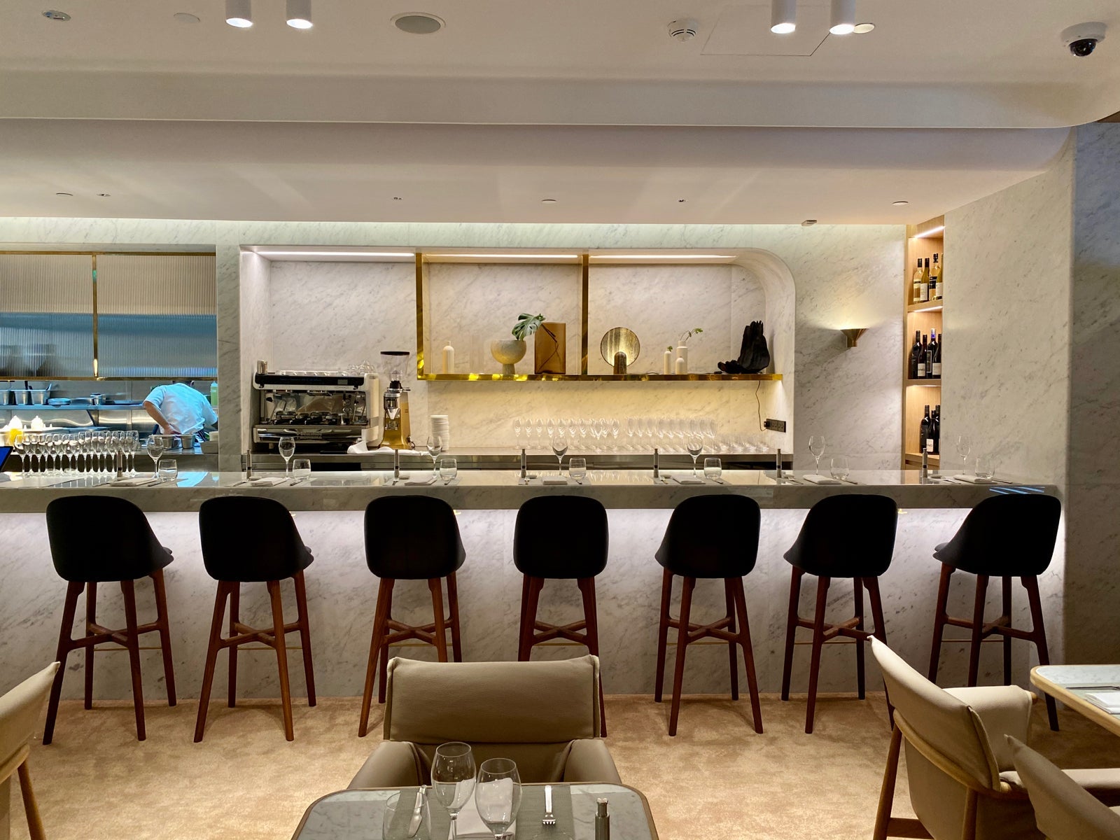 The marble-clad bar is in the middle of the lounge. There's no seating at the bar, since all drinks are made to order and delivered to the tables.