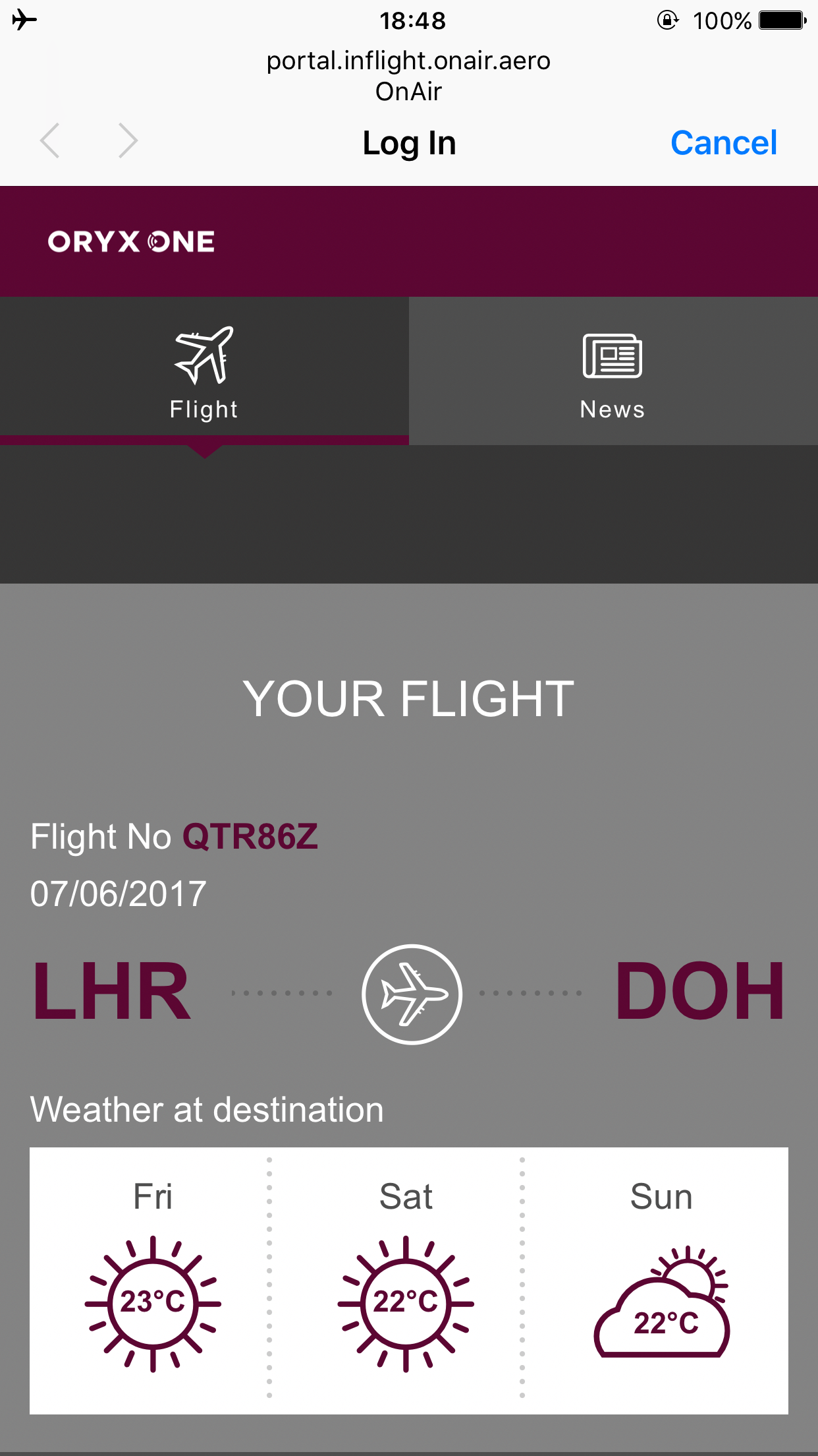 Qatar Airways offers onboard WiFi via GSM, similar to what you'll find on Emirates and Etihad flights. The service is known as 'OnAir' but for some reason, it did not work on this flight at all. I couldn't get past the initial payment screen until I spoke to the FA, who said it was 'playing up' and apologized profusely.