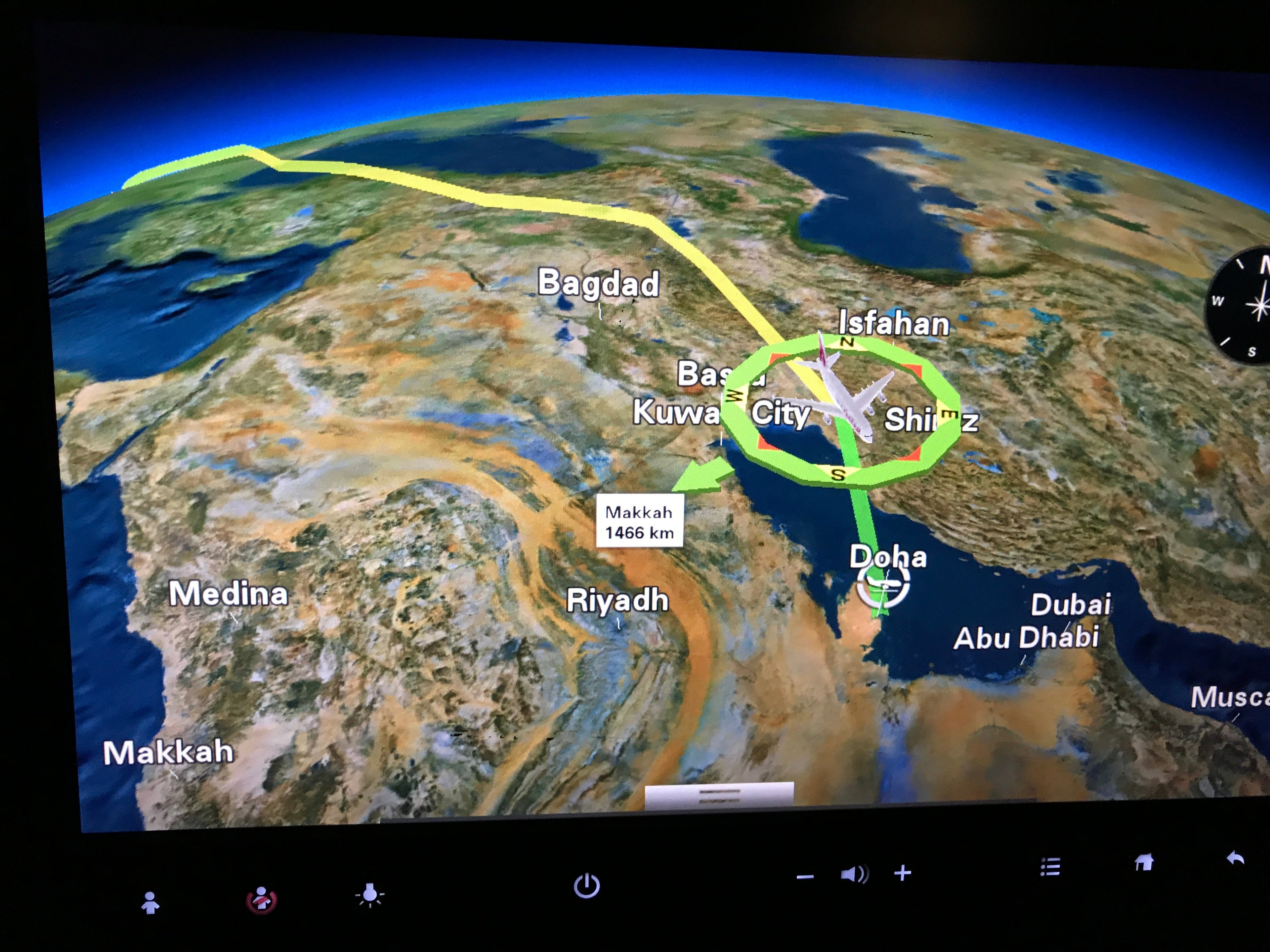 When I returned to my seat, we were well into our descent into Doha. While Qatar Airways flights from Europe to Doha rarely enter Saudi Arabian airspace, it was evident that our route was mostly over Iran for the entire 'Middle East' part of the journey. From Iran, we entered directly into Qatari Airspace, as you can see in the image below.