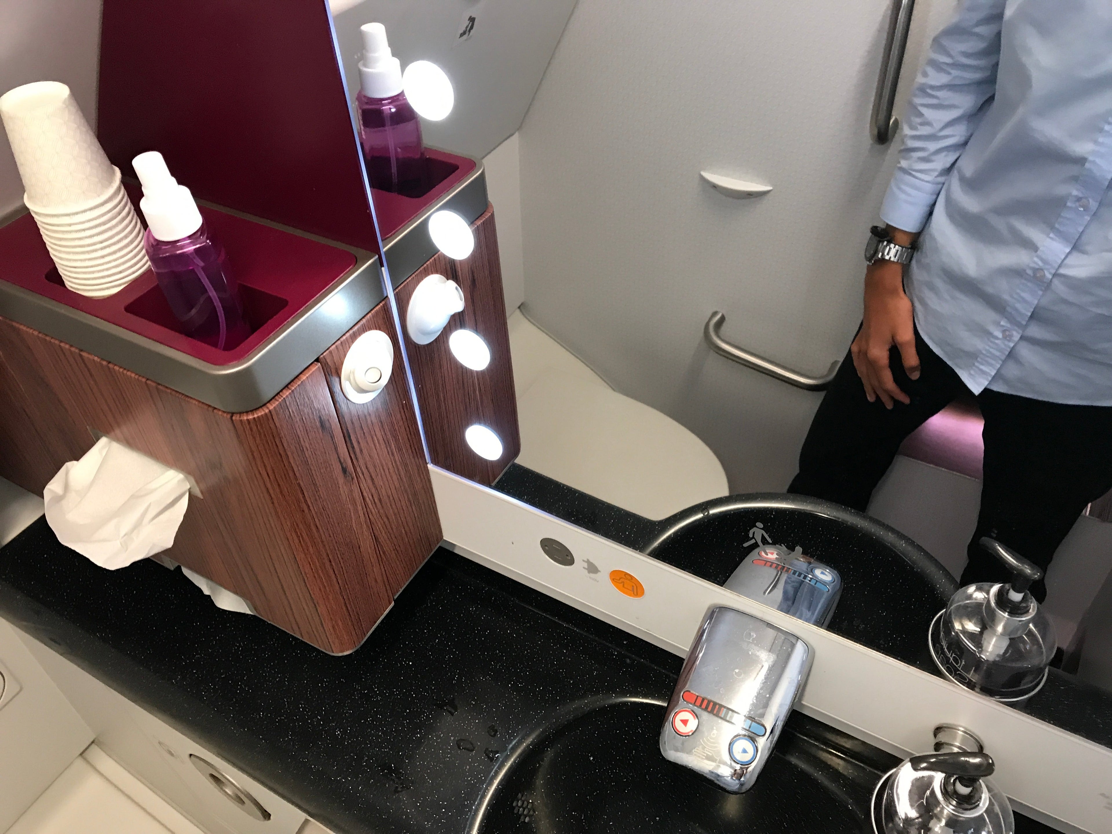 The lavatories were very clean — partly due to the fact there was no one onboard to use them — and in line with the rest of the Qatar Airways fleet.