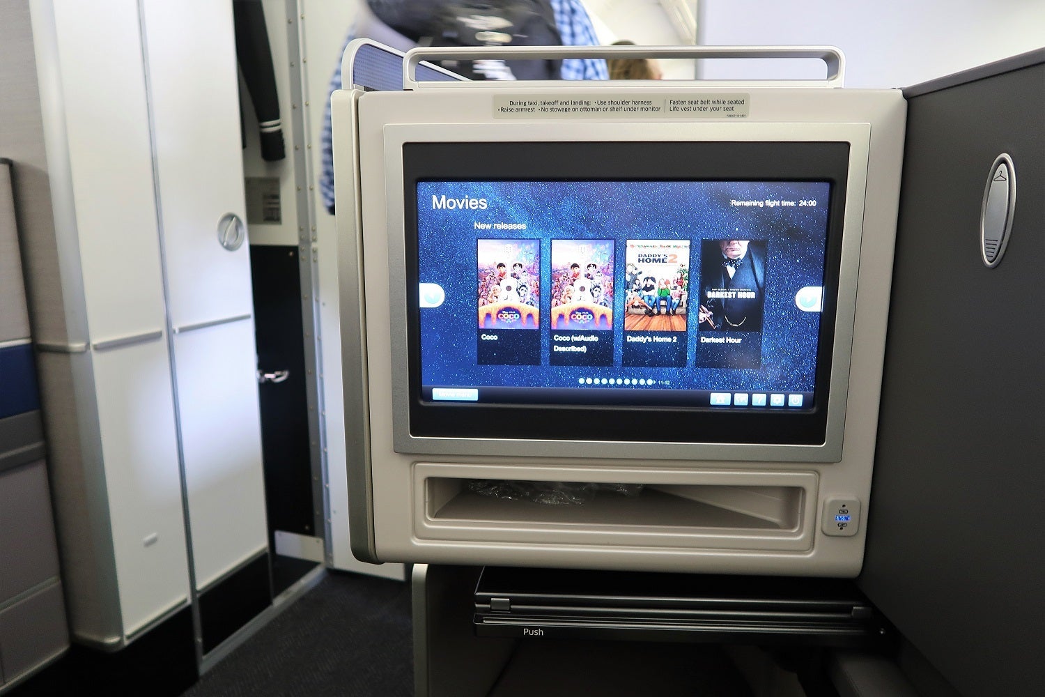 Each seat has a large touchscreen directly in front of it, and it's stocked with a solid selection of movies. I was disappointed that the only "audio" options were audiobooks — I couldn't find any music. That said, United does score major points for having an amazing AvGeek feature: a live air traffic control feed.