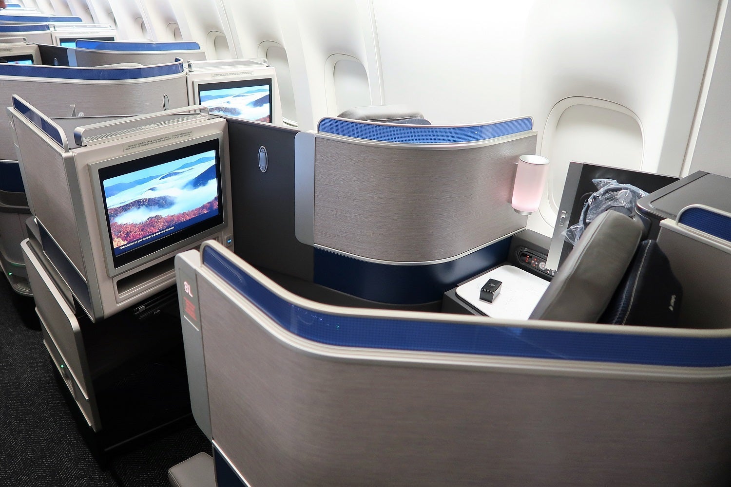 United 777-200 772 Polaris business class window seats in the forward cabin