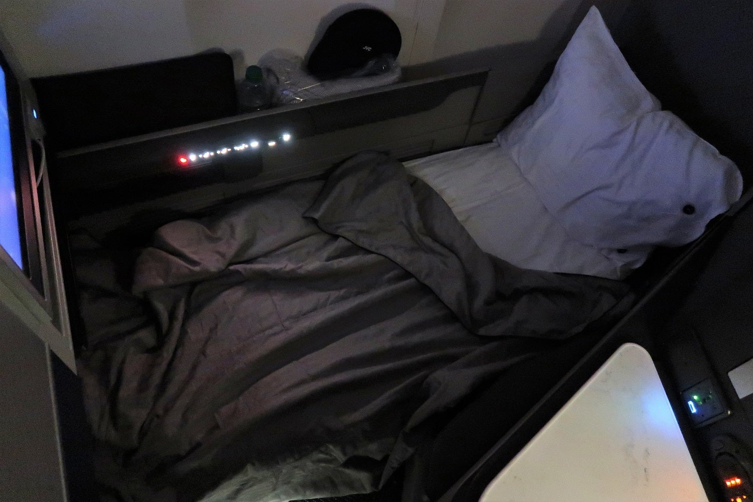 Before heading to sleep, I asked for a mattress pad. I returned from brushing my teeth to find it left in my seat in its packaging. After taking the mattress pad out of its wrapping and performing my own turndown service, my bed was ready to provide me with several hours of restful sleep.