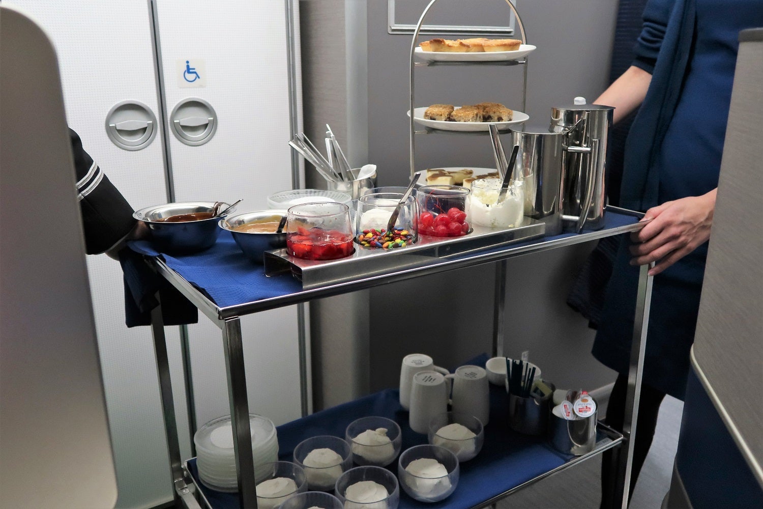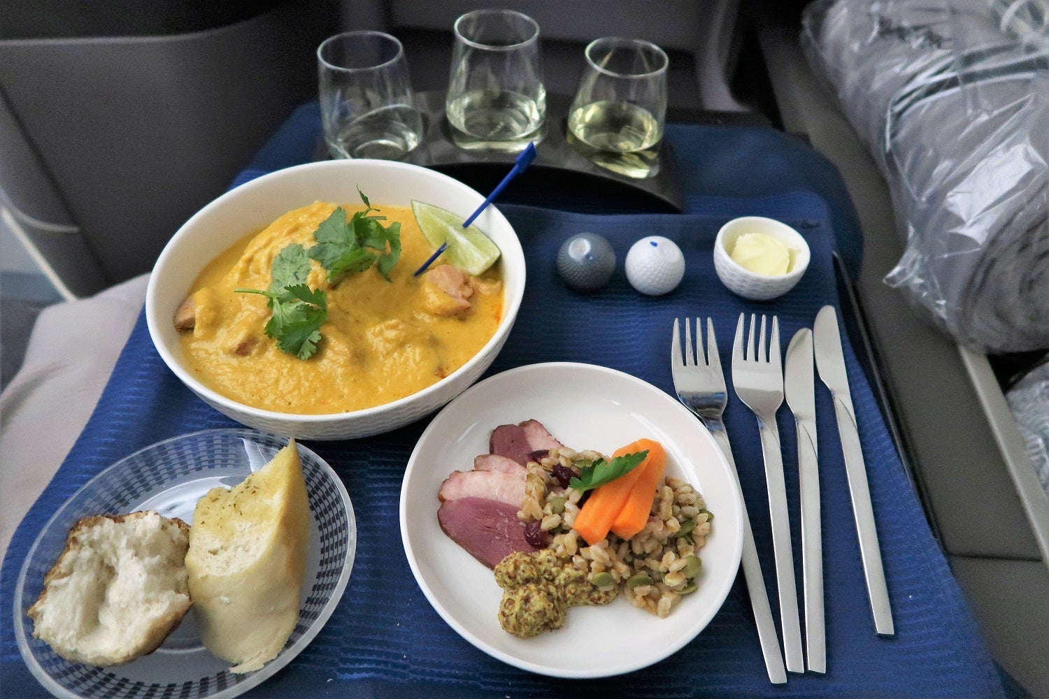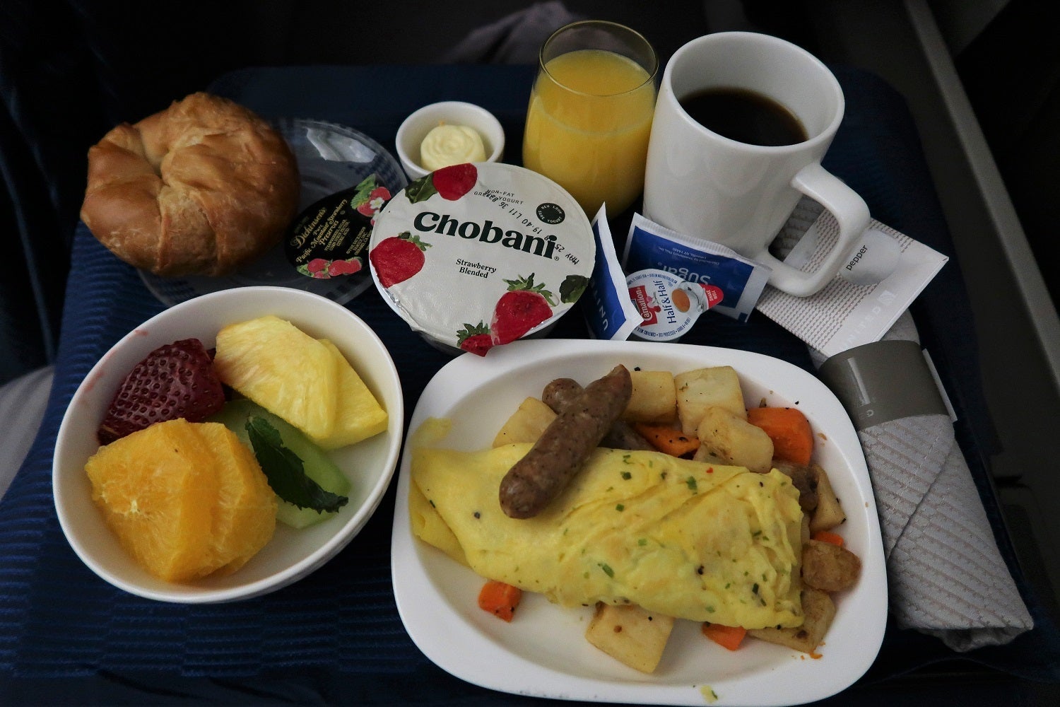 In the name of getting a full review, I asked to be woken up for breakfast. I chose the hot option and was served a very large breakfast. I'd say that you could easily skip dinner to maximize sleep and then be completely satisfied with this meal upon waking up in the morning.