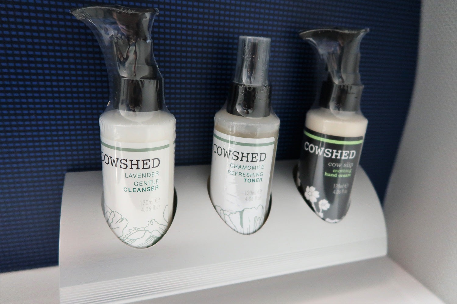 The bathrooms were stocked with Cowshed toiletries. At boarding, the bottles still were wrapped.