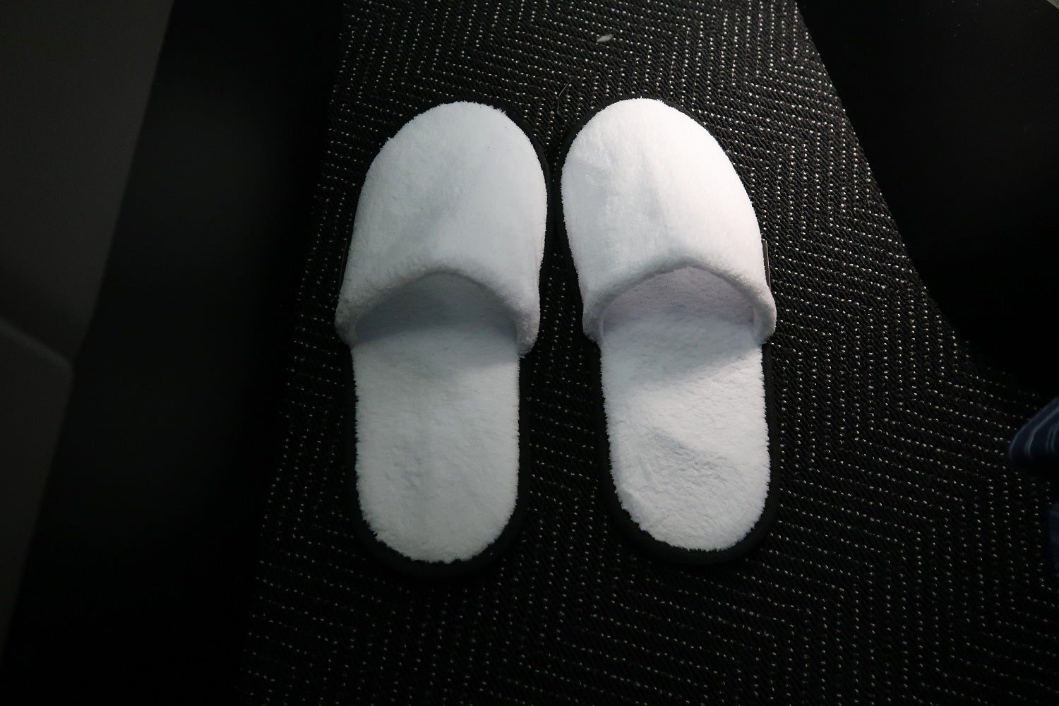 One of the more annoying aspects of the United Polaris experience is having to remember to ask for some amenities. These include slippers, a mattress pad, a memory foam pillow and pajamas (on flights of 12+ hours). Knowing about this "secret menu" of amenities, I asked for slippers early on so I could wear them during the flight.