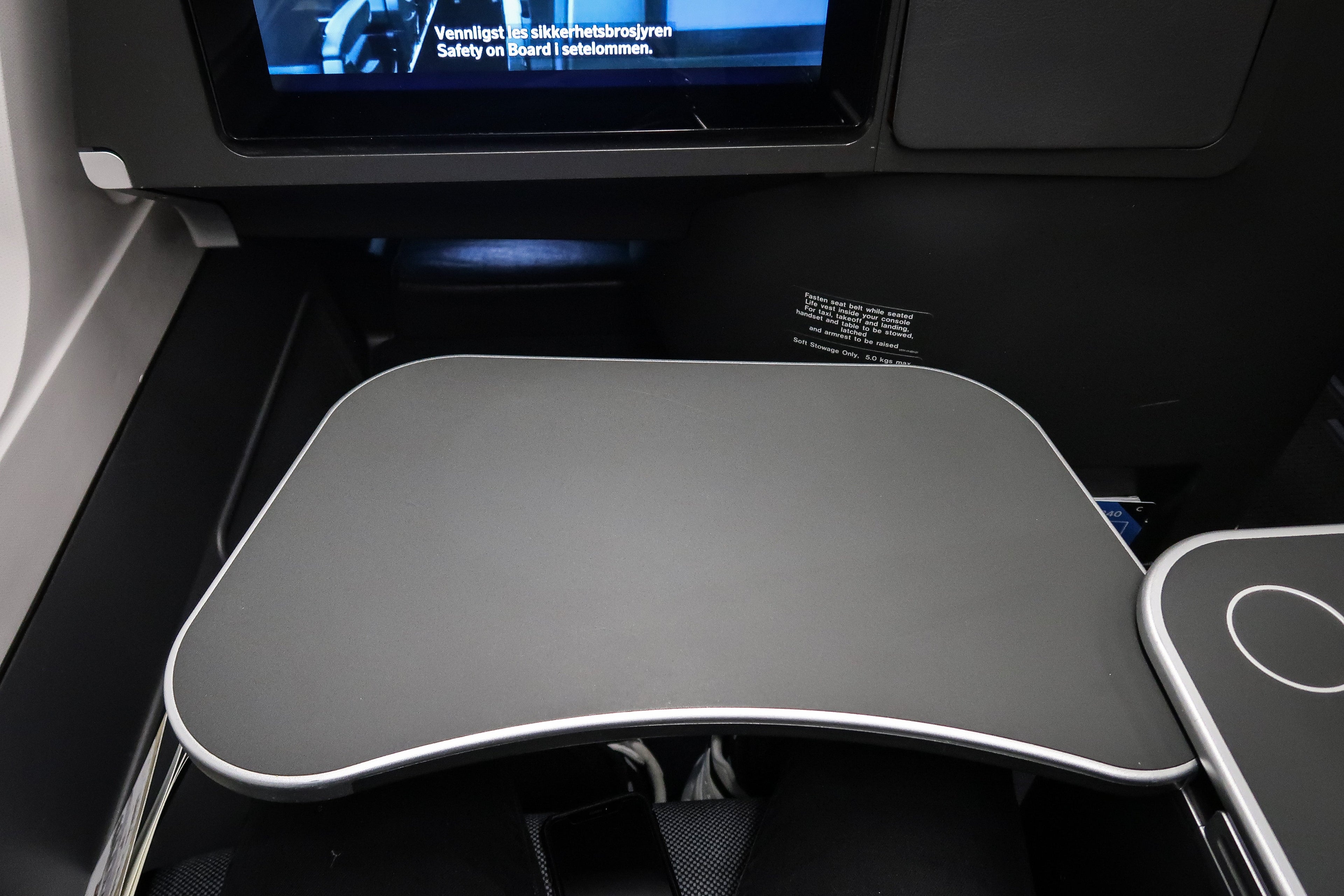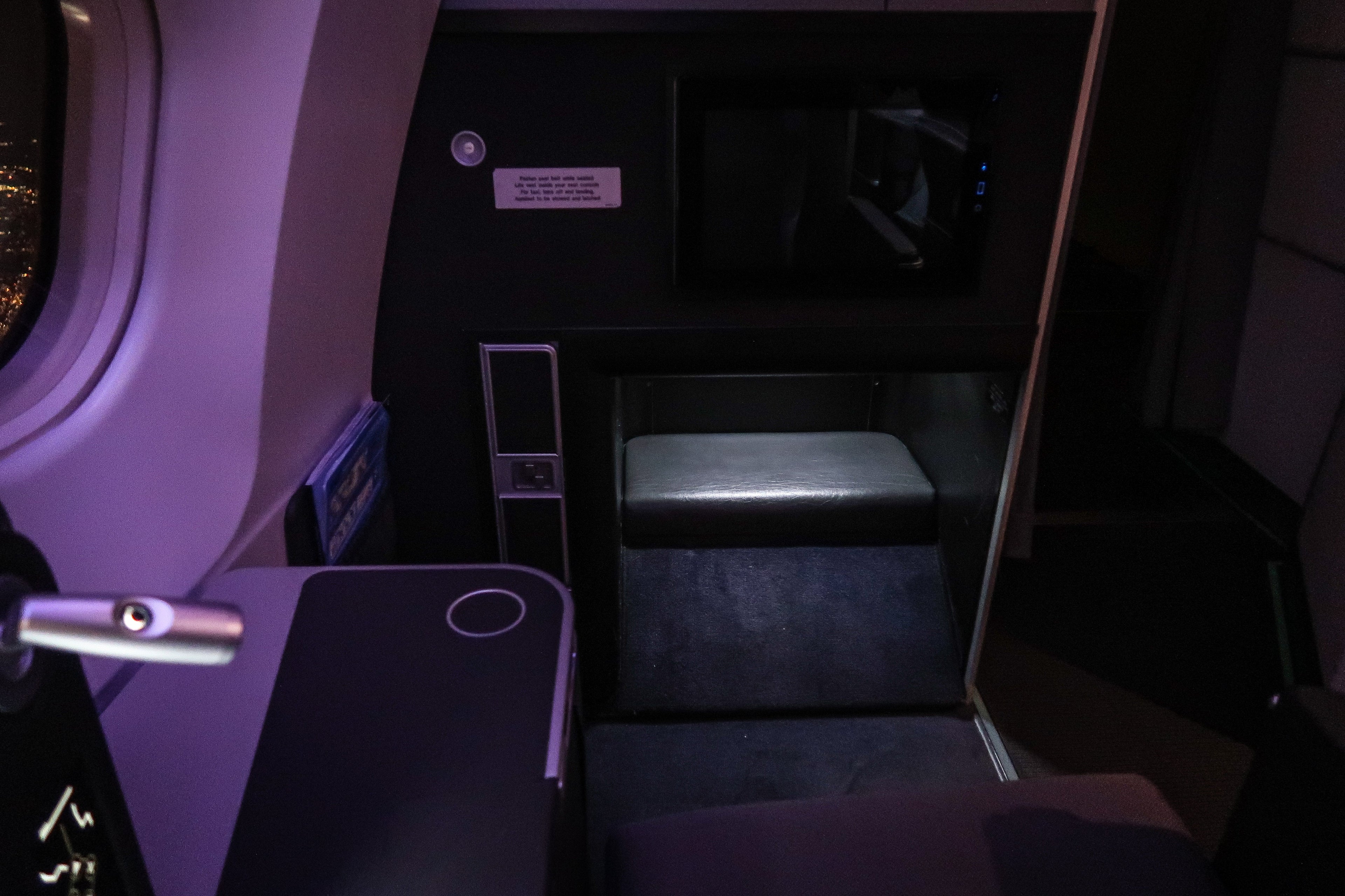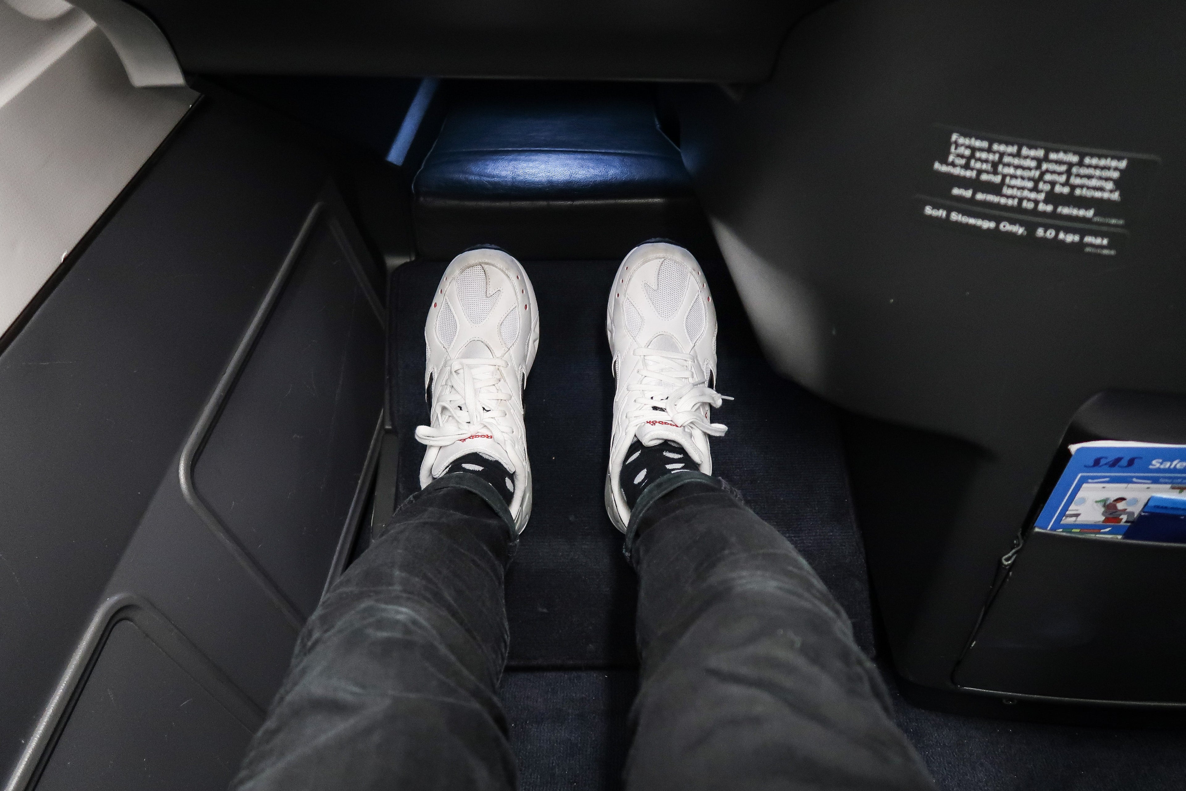 The seat in front of mine had a much larger footwell, as it was a bulkhead seat with no other seat in front of it. The extra space allowed for more movement when the seat was flat, and so I asked the flight attendant to set this seat set up for sleeping. I slept a solid four hours on this short transatlantic hop!