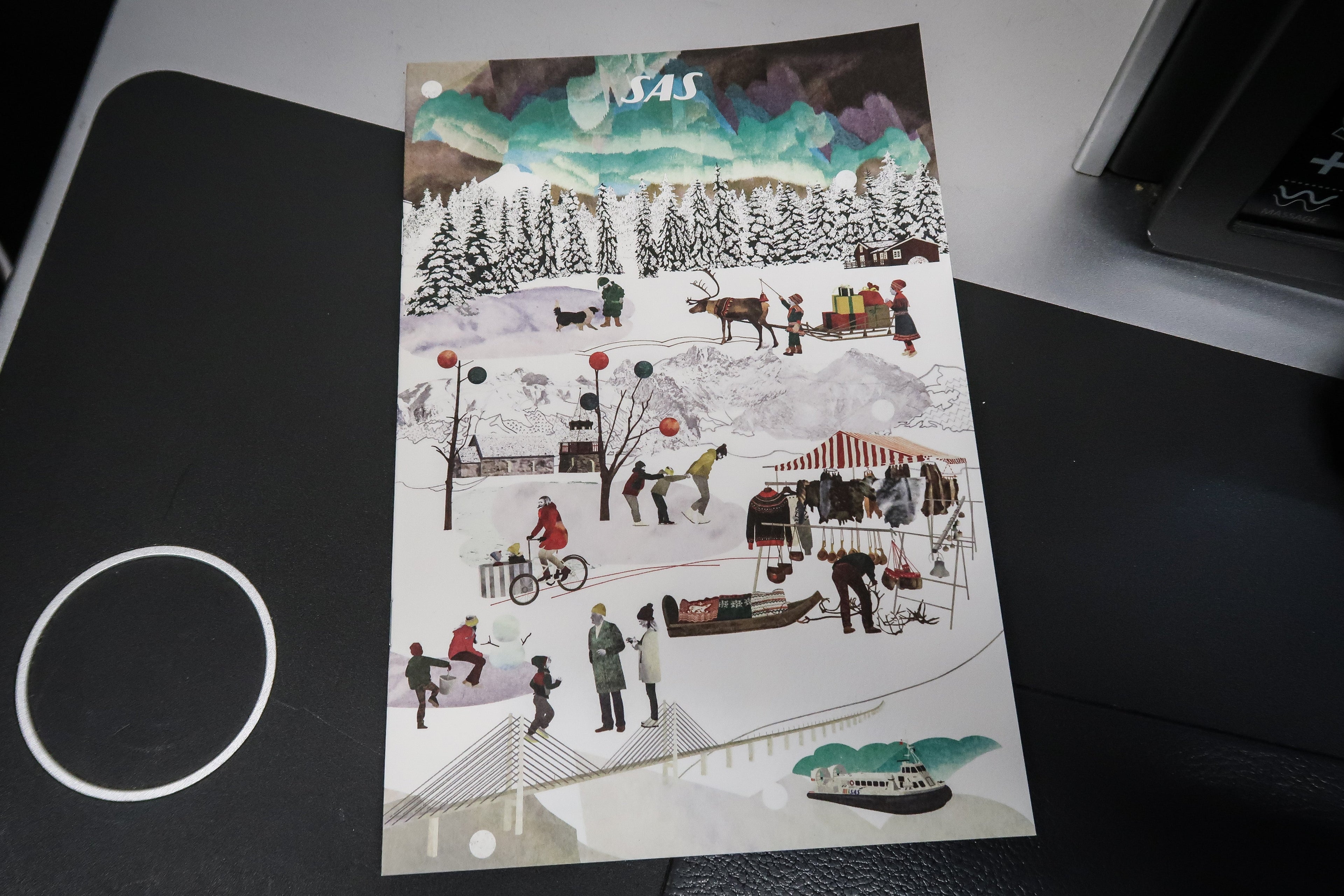 At my seat was a very cute and unique menu designed by Japanese illustrator Natsko Seki depicting typical Scandinavian winter scenes -- I was a big fan of this, and it reflected the airline's heritage.
