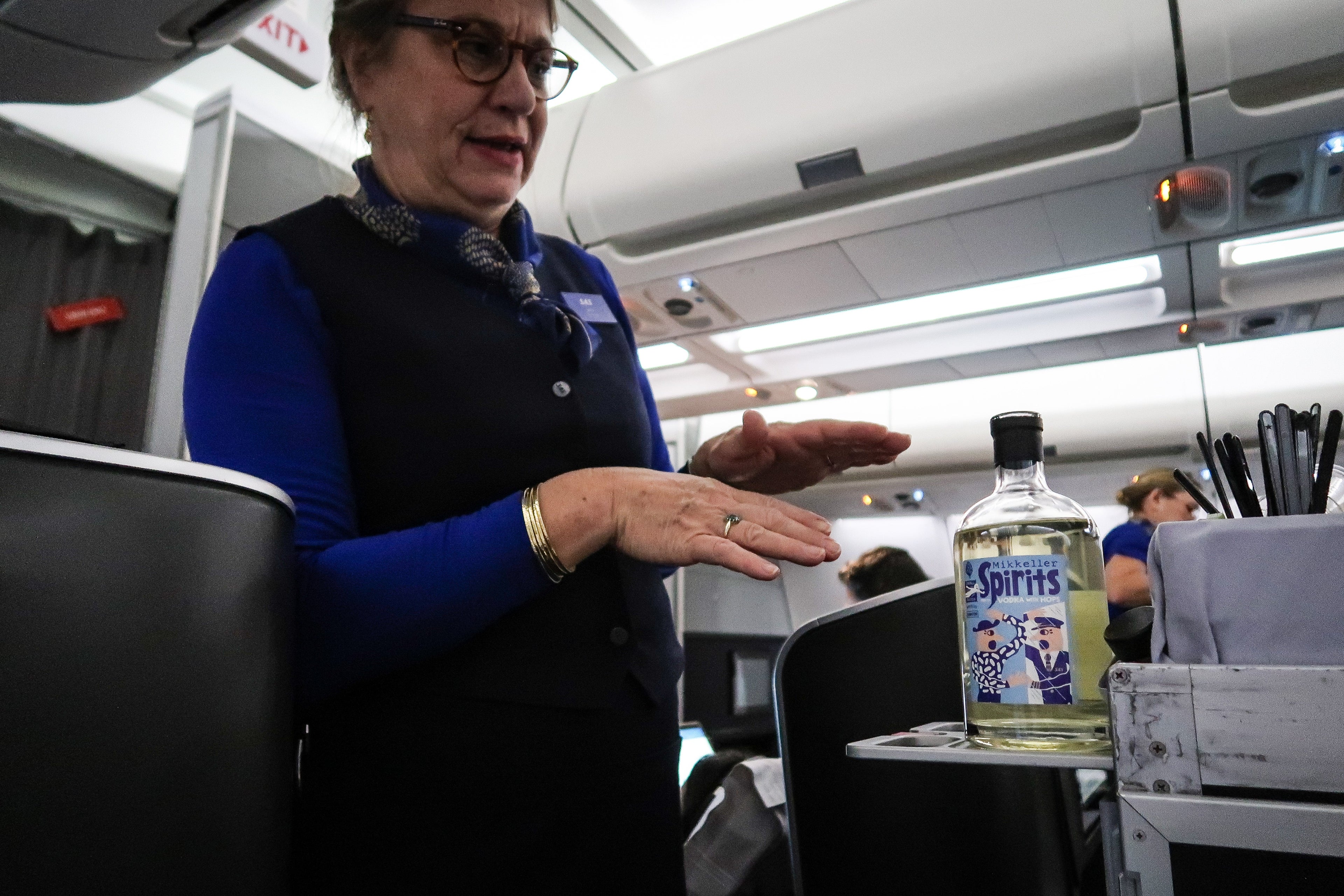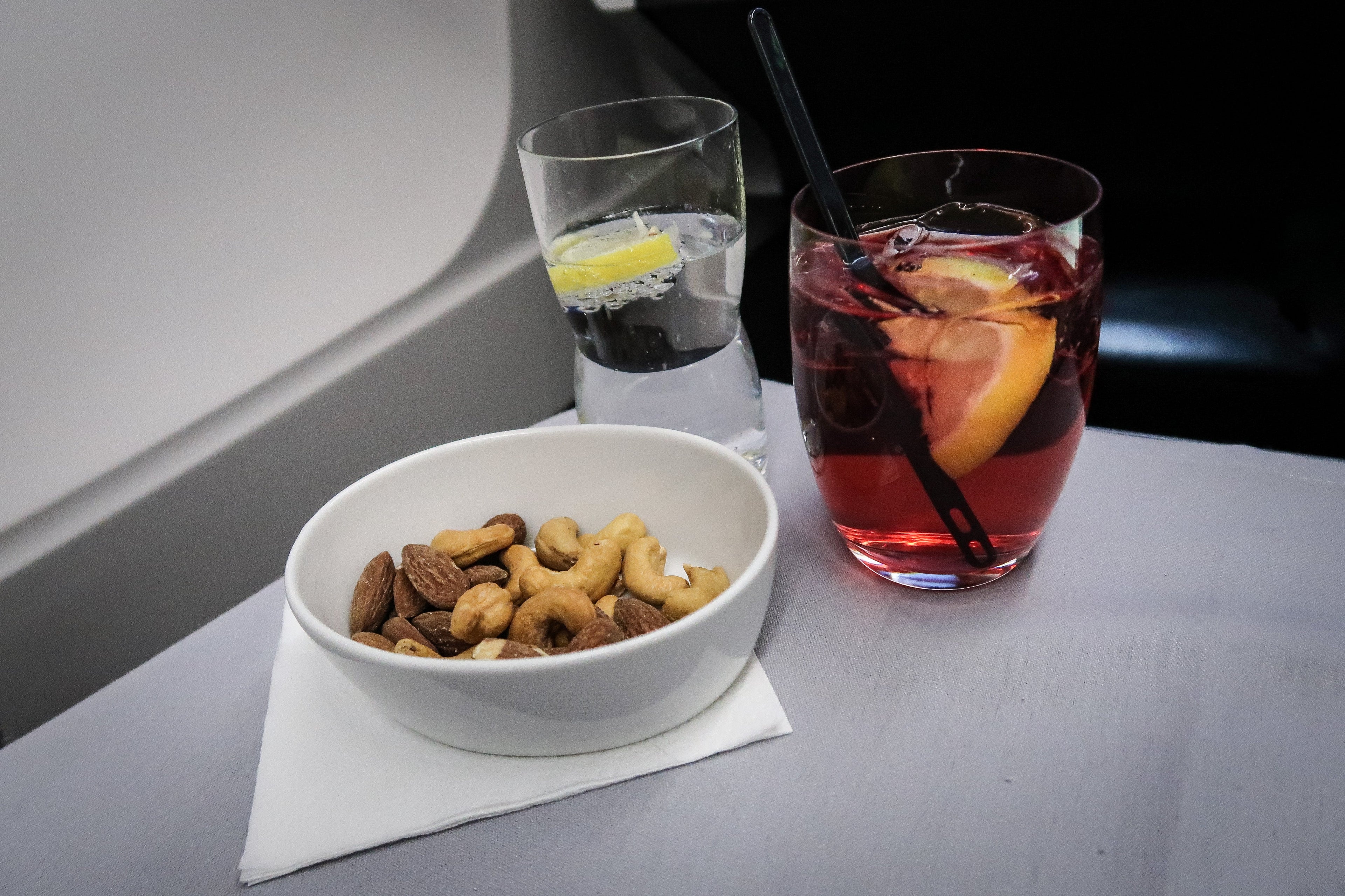 Shortly after takeoff, flight attendants brought around a drinks trolley, and, after very little persuasion from the cabin crew, I went for a cocktail made with Danish Mikkeller vodka, cranberry juice and pink grapefruit tonic, which was delicious.