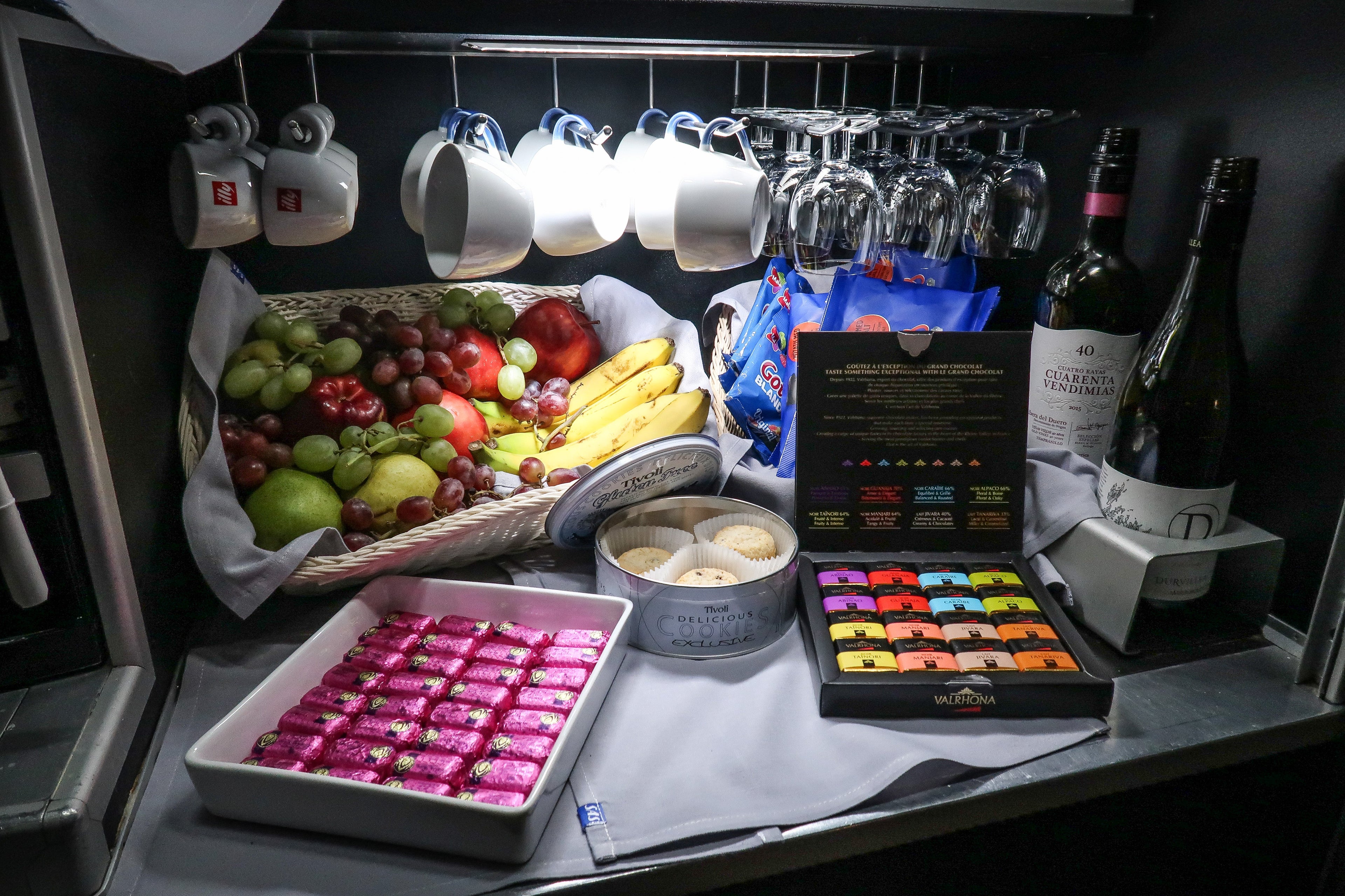 The galley was incredibly well-stocked with cookies, chocolates, fruit and wine throughout the flight. It all looked fresh and appealing. These snack stations can often look a little sad, so it was a joy to see this bountiful offering.