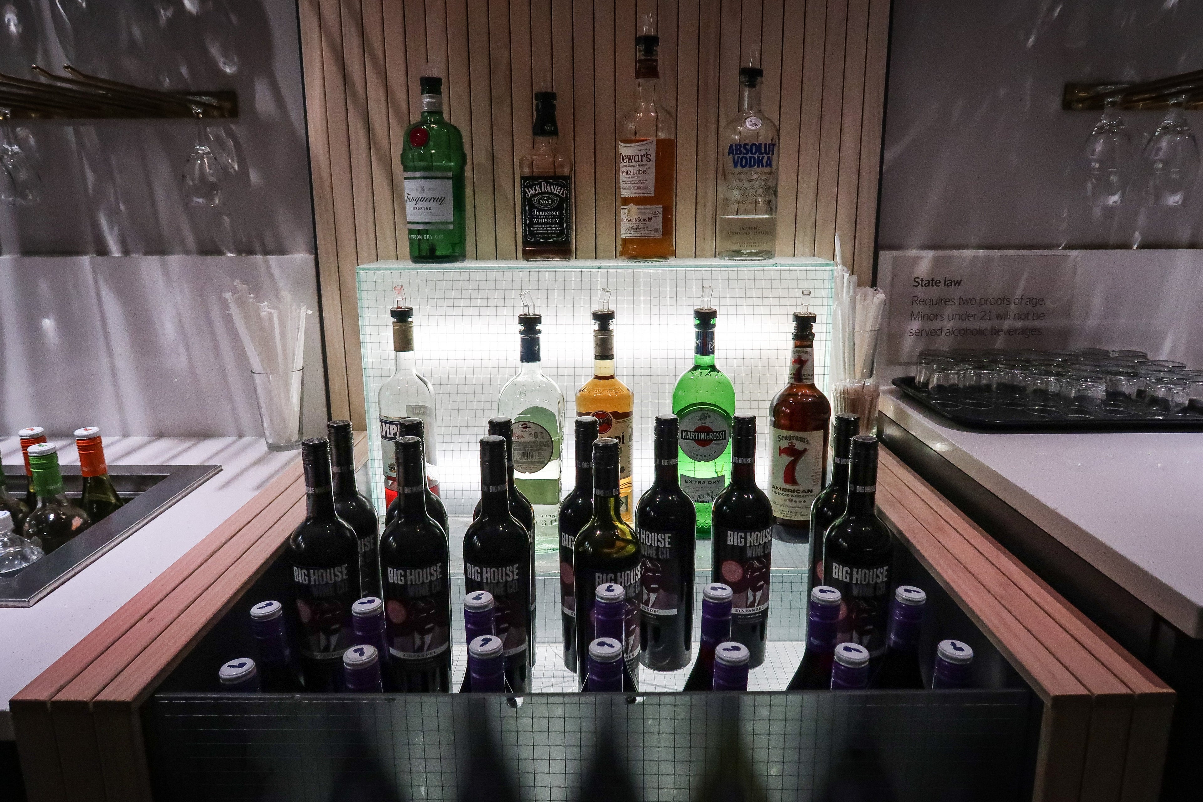 Alcohol was self-serve and featured mainly mid-range liquor options, as well as a variety of red and white wine.
