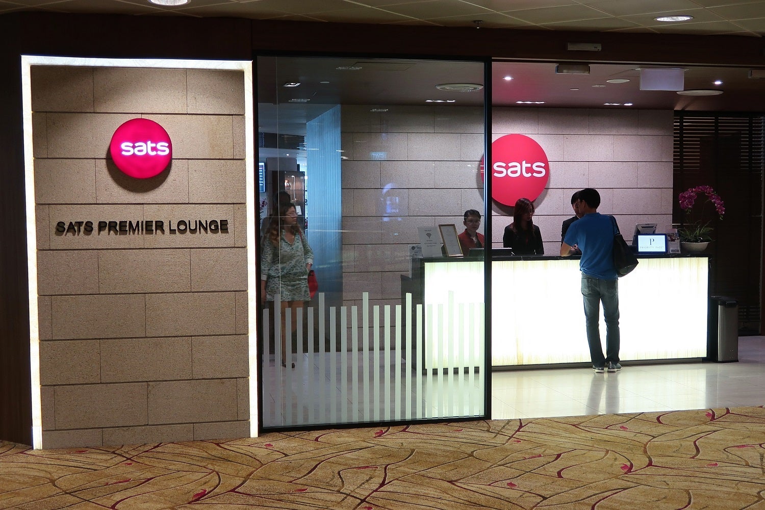 To get to the SATS Premier Lounge in Terminal 2, turn left after passing through departure immigration. Then take the first escalator behind the information counter leading to the airline lounges and you'll see SATS-branded lighting on the outside of the lounge.