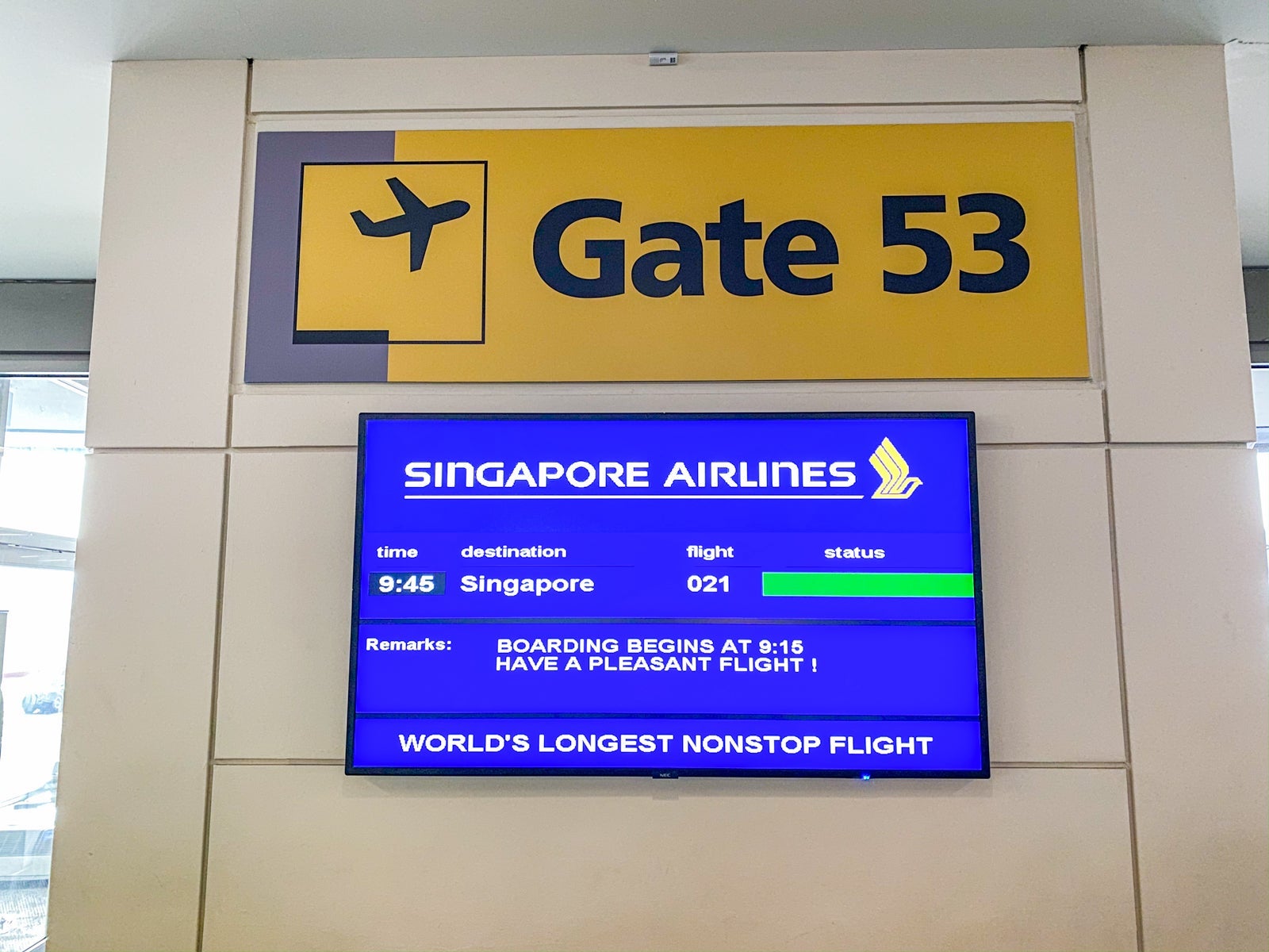 The departures board was the first and only reference to Singapore's flight being the world's longest.