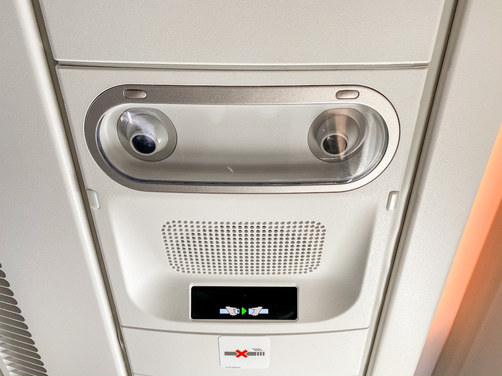 The other nice thing about the seats is the variety in lighting choices. It's nice to be able to simulate an office environment when the cabin lights are dimmed. There are three lights to the left of the seat, one to the right and one above the seat. (There aren't any personal air nozzles next to the overhead light, though).