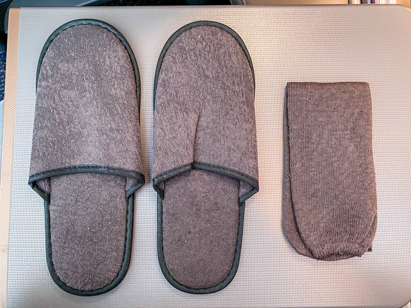 In terms of amenities, Singapore takes a different approach from most other carriers: They don't offer traditional amenity kits. Instead, there were low-quality slippers, socks and an eye mask waiting at my seat during boarding.