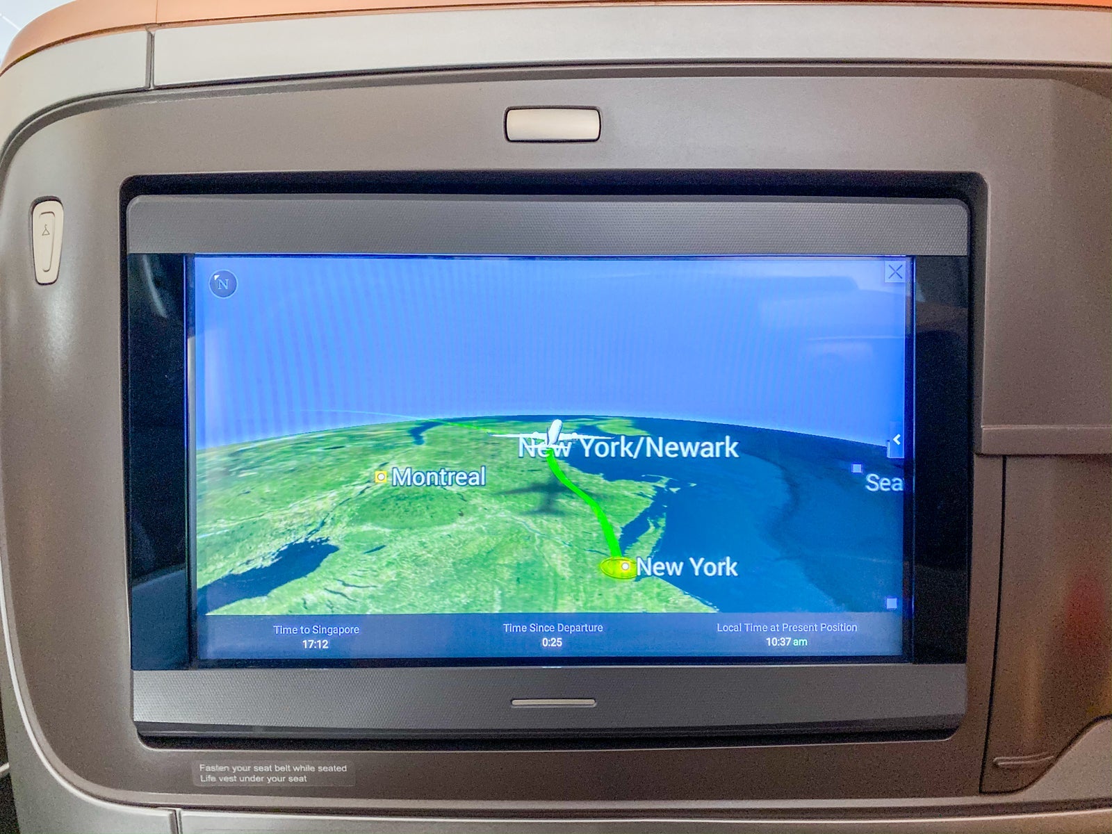 For a flight so long, it's important to be connected to home, but Singapore dropped the ball on inflight connectivity. Wi-Fi, provided by Panasonic, was available throughout the flight. Note, however, that most flights on this route go via the North Pole, where there's no satellite connection. To take advantage of favorable winds, though, we proceeded via Europe, so we had a Wi-Fi signal the entire flight.